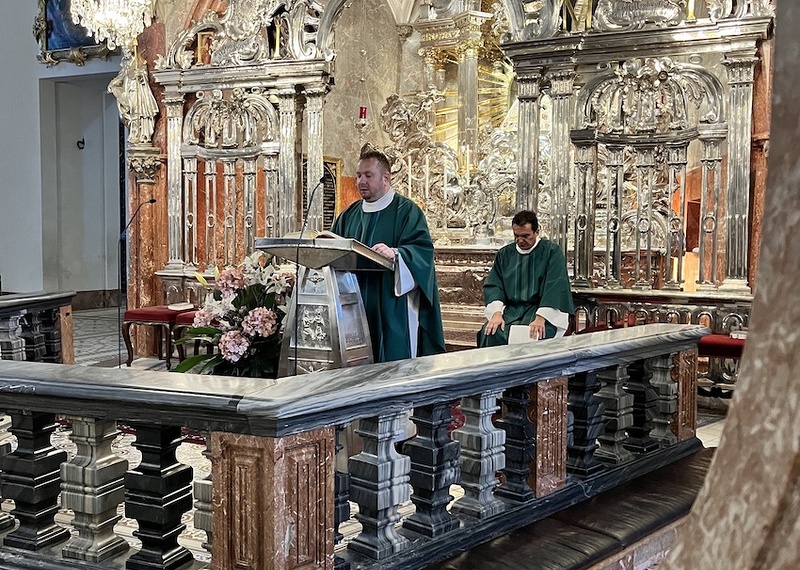 Nedilja je začela jutro sa svetom mašom u sedmi ura za pokojne, ku je predvodio vlč. Marko Zadravec. Ove svete maše jutro su osebujno lipe. Tišina nam daje mogućnost, da zaistinu uživamo u miru mjesta, u miru bazilike. Jutarnje maše su dale neki poseban osjećaj za sve, ki su bili nazoči. Hodočasna mjesta su gusto prepuna, ali u jutarnje vrime se človik more u miru predati molitvi i peljati razgovor s Bogom. Kantor ovoga mašnoga slavlja je bio kantor Martin Herić iz Čembe.