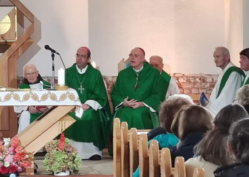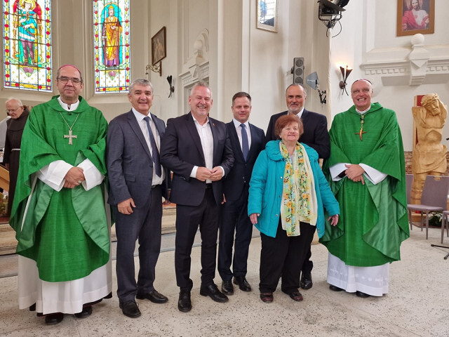 Željezno, 15. septembar 2024. (KAP): Svitu nisu potribne nove granice, nego već otvorenosti i pripravnosti, da se susretnemo s poštovanjem i solidarnošću. Ovo je naglasio željezanski biškup Egidije Živković u svojoj prodiki na nediljnom bogoslužju u crikvi sv. Emerika blizu granice u Felsörönöku u Sambotelskoj biškupiji. Biškup Živković predvodio je svetu mašu skupa sa sambotelskim biškupom Jánosom Székelyjem. Zajedničko bogoslužje triba biti “znak zajedničtva i mira”, istaknuli su biškupi. ORF 2 i ZDF prenosili su svetu mašu uživo.