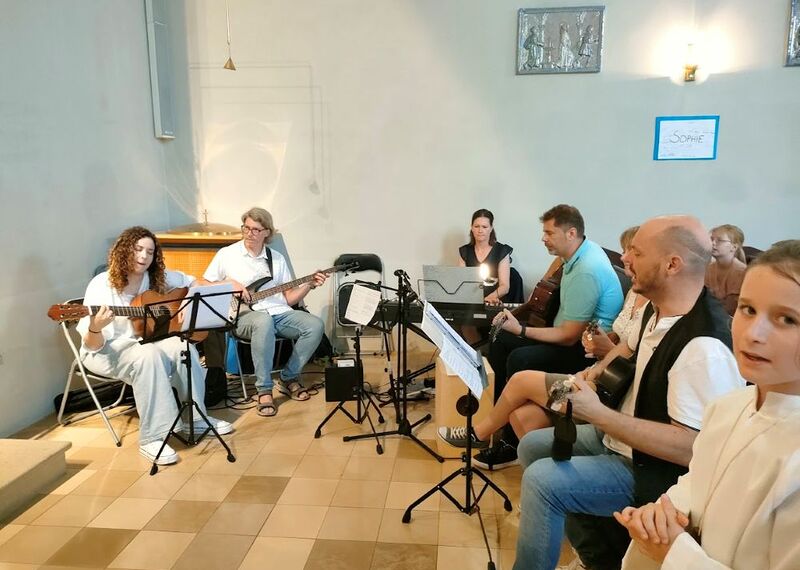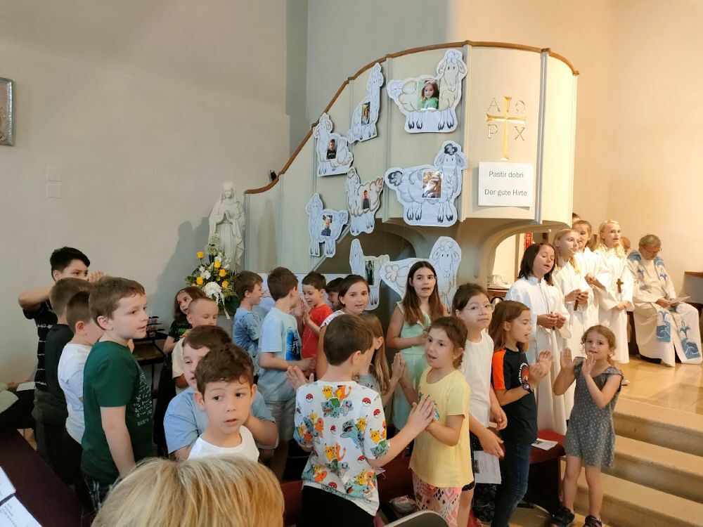 Svetu mašu su muzički oblikovala dicu pod peljenjem Martina Omischl i benda, čiji člani su rado pratili dicu, ka su oduševljeno i otvorenim i veselim srcem jačila. Glavnu ulogu su igrali školari iz Pinkovca, ki su sve pjesme znali napemet. Hvala svim vjeroučiteljem, ki su se skrbili, da se dica nauču jačke. Dica su bila uključena u svetu mašu i pri čitanju. Farnik Grandić se je s prodikom pripravio za dicu. Bilo je lipo viditi dijalog dice i farnika, znanje školarov i školaric iz vjeronauka. Po maši su sva dica i učitelji išli u dvoranu, kade su dicu čekali objed, nogomet i igre. Hvala svim u Pinkovcu, ki su sve dali od sebe da se ovo dičje shodišće dobro ugoda. Hvala svim farnikom, učiteljicam i učiteljem, ki su si zeli vrimena i truda i bili nazoči ovu srijedu.