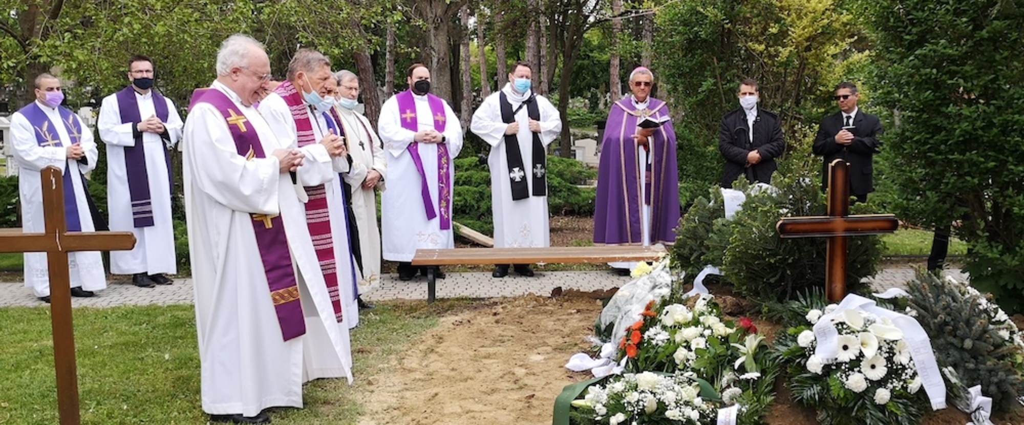 Po svetoj maši-zadušnici je slijedio pokop u blizini crikve Duha Svetoga ležećem centralnom groblju Jura-Nádorváros, kade je pokopan u redu drugih duhovnikov. U hrvatskom materinskom jeziku smo izmolili za dušu pokojnoga Oče naš i Zdravu Mariju i kiticu marijanske jačke „Lipa si, lipa“, pri koj su osobito nazočni vjerniki iz Hrvatske Kemlje zmožno jačili.