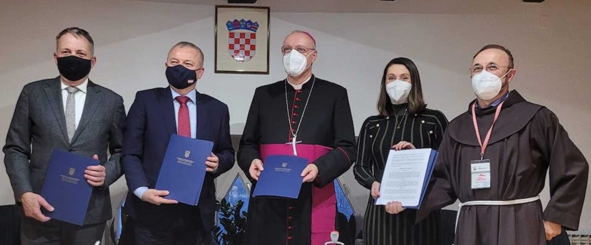 Biškup dr. Egidije Živković, direktorica Karitasa Željezanske biškupije mag. (FH) Melanie Balasković i predsjednik gradišćanske udruge Hrvat S.A.M. iz Zagreba kot i delegat Austrije za obnovu Hrvatske fra Božidar Blažević, potpisali su 13. decembra sporazum o suradnji s ministrom Darkom Horvatom i državnim tajnikom Gordanom Hanžekom o izgradnji pet stanov u Banovini.