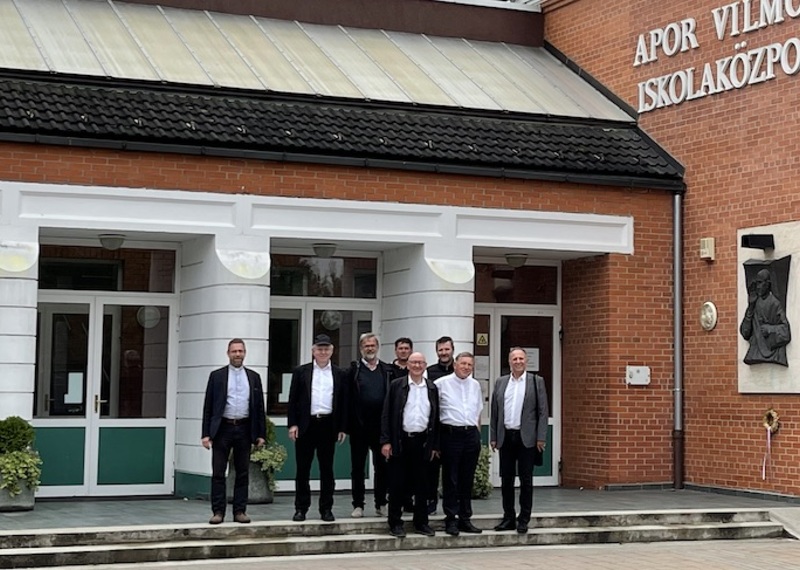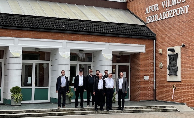 Po duševnom i tjelovnom okripljenju smo si razgledali i školski centar, imenovan po mučeniku-biškupu Aporu Vilmošu, ki se je isto zgradio na inicijativu prelata Benkovića (1993.) i koga sada pohadja oko 1.300 školarov a podučava je oko 150 učiteljev. I vjerski žitak se u školi gaji, ar se u velikoj kapeli svečuje dnevno sv. maša. Školu održava zaklada “Apor Vilmoš”. Na susjedstvu školskoga centra je isto prelat Benković dao izgraditi starački dom (1997.) u čast sv. Ane a nekoliko ljet kasnije (2004.) i starački dom u Győrújbarátu. Vidili smo i duhovni stan u istom selu, Győrújbarátu, isto zgradjen na inicijativu kanonika Benkovića (1998.).