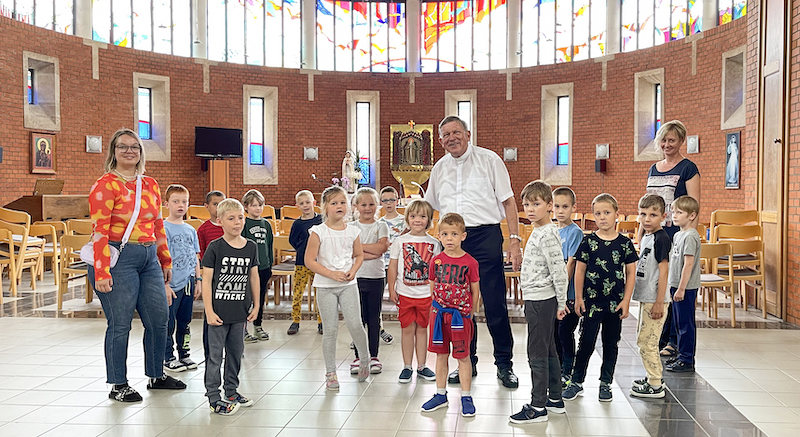 S njim skupa smo svečevali u crikvi svetu mašu za mir i pravičnost. Prelat Benković nam je u svojoj prodiki predstavio gradnju crikve u čast Duhu Svetomu na rubu grada Jure, uz veliki centralni cimitor. Gradnja crikve je durala dvi ljeta a blagoslovljena je 6. junija 1987. ljeta. Velikodušno je gradnju podupirala i naša Željezanska biškupija. Glavni celebrant biškupski vikar Željko Odobašić se je u ime svih sudionikov zahvalio, da moremo ovde u duhu bratinstva svečevati svetu mašu. Po sv. maši smo razgledali raku pod crikvom, u koj je jur oko 2000 ljudi našlo svoj vječni počivak ili u urna ili u lijesi.