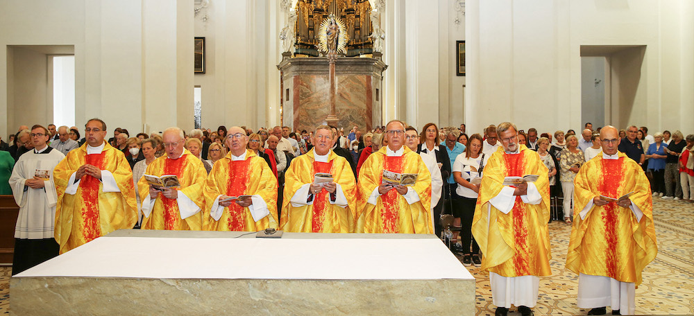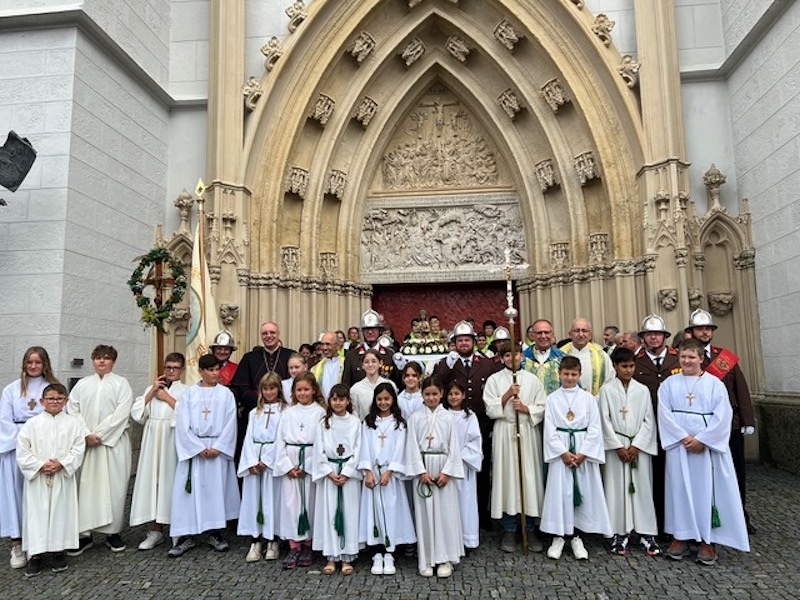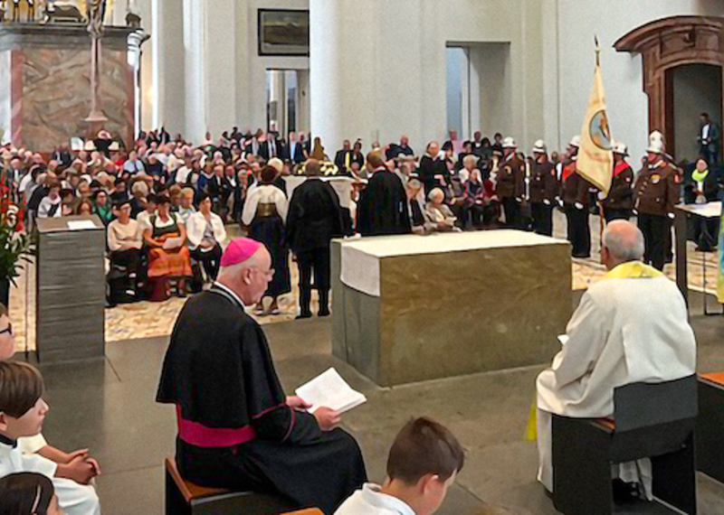 Vrhunac je bila kot svako ljeto u 10.00 ura svetačna sveta maša kod glavnoga oltara, ku je predvodio biškup mons. mag. dr. Egidije Živković u krugu brojnih svećenikov a oblikovala fara Kalištrof/Bajngrob - mišani crikveni zbor Kalištrof/Bajngrob, kantor mag. Jožef Gsertz.