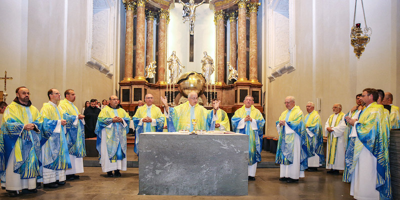 U 10.00 ura su dva drugi jubilari oblikovali svetu mašu kod glavnoga oltara: prelat č. kan. Ferenc Benković, farnik crikve Duha Svetoga u Juri, ki je pred 50 ljeti pokrenuo hrvatsko shodišće u Juri, ter tamburica Uzlop, ka slavi 60 ljet.