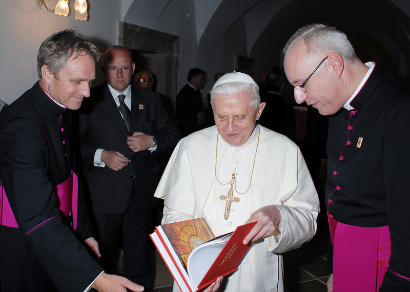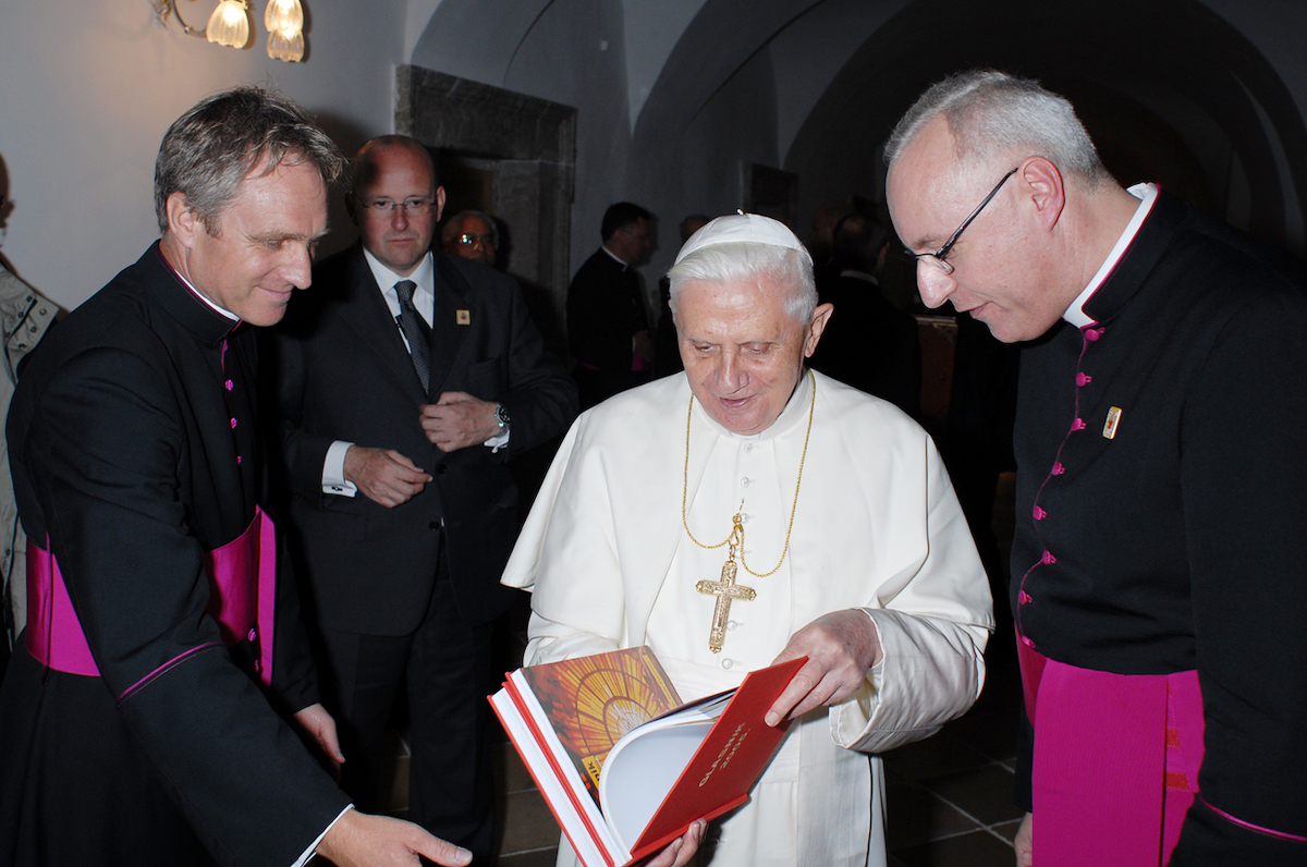 Za 265. papu u povijesti Katoličanske Crikve izabran je 19. aprila 2005. ter si je izibrao ime Benedikt XVI. Bio je na 24 apoštolski putovanji izvan Italije, na svi kontinenti - od 7. do 9. septembra 2007. u Austriji a 4. i 5. junija 2011. u Hrvatskoj. U Italiji izvršio je 29 pohodov.