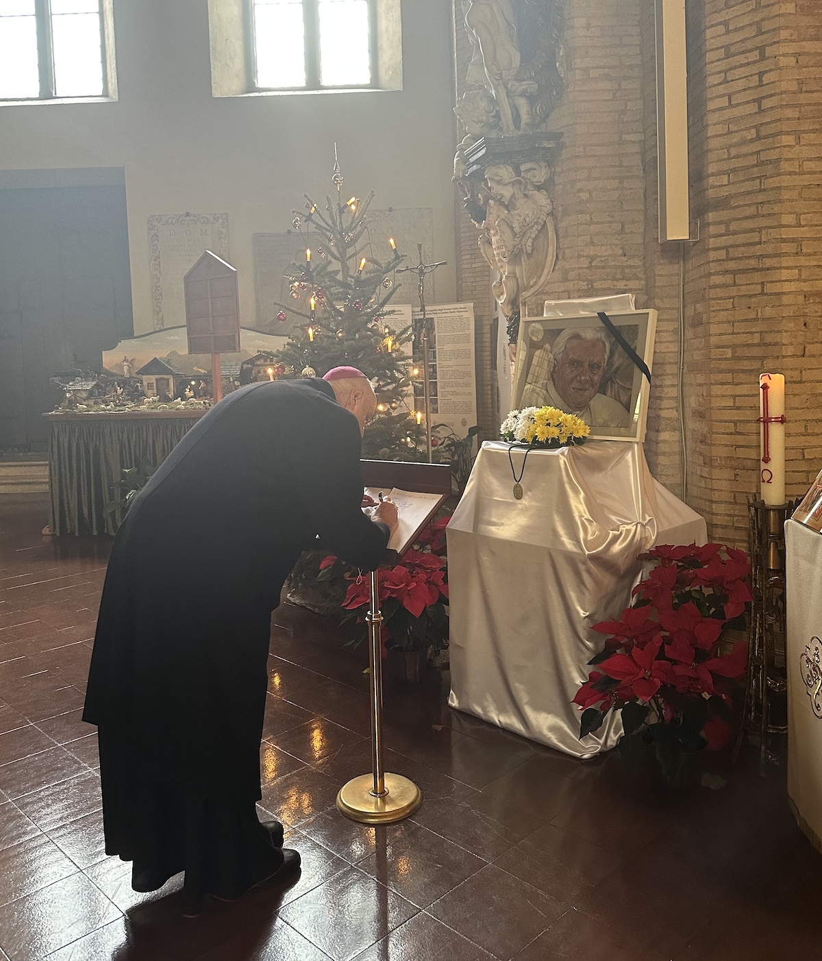 Željezanska biškupija je “diboko pogodjena” smrću pape em. Benedikta XVI., a i on osobno - izjavio je biškup dr. Egidije Živković odmah na Staro ljeto. Osobno lučio se je u Rimu, kade je bilo mrtvo tijelo pokojnoga pape do 4. januara izloženo u Petrovoj baziliki. 5. januara je papa em. Benedikt XVI. pokopan.