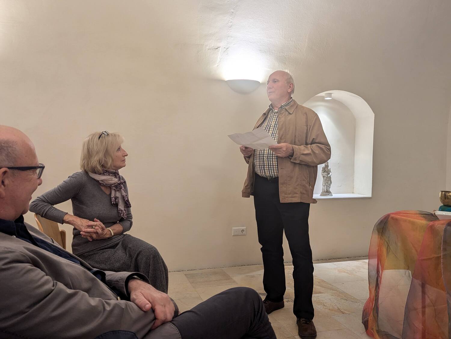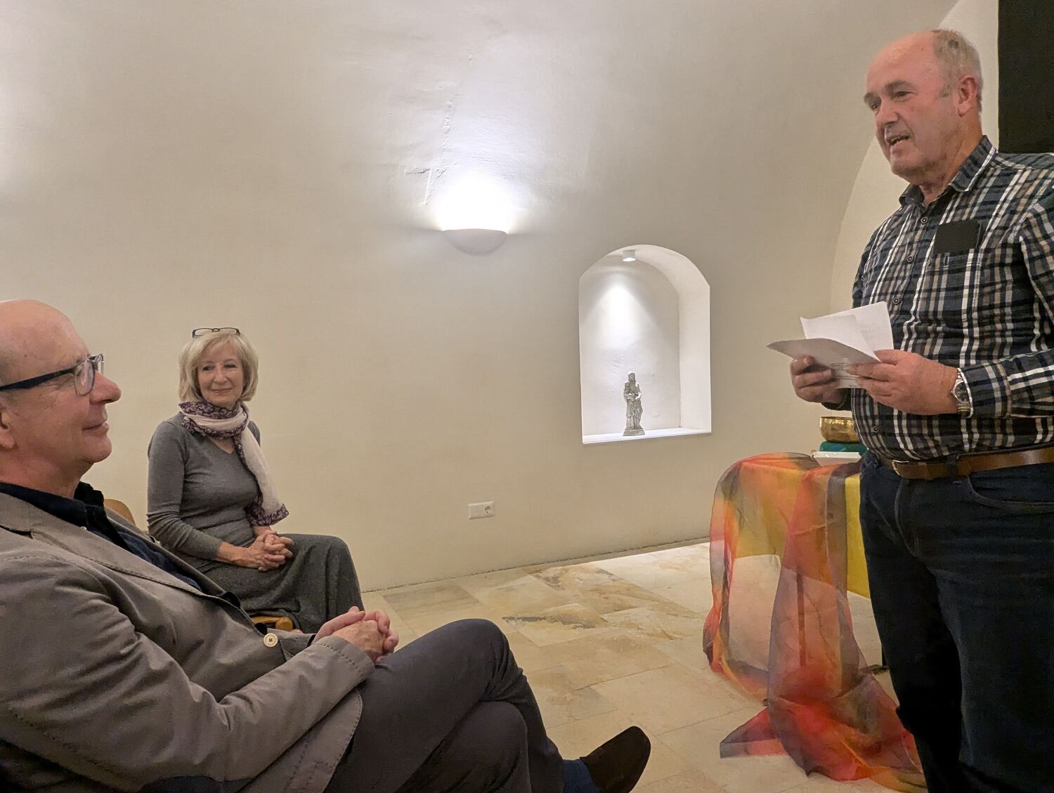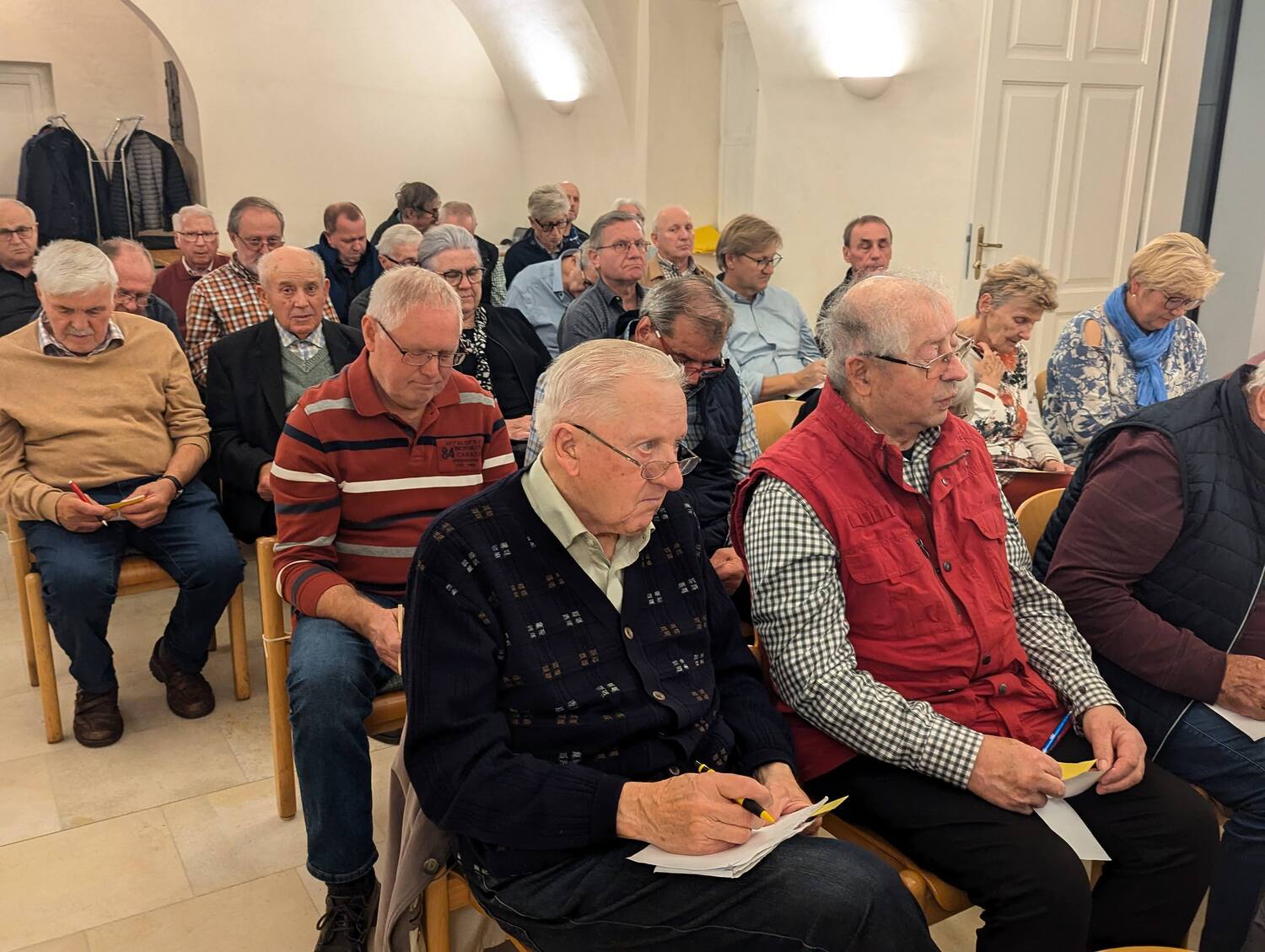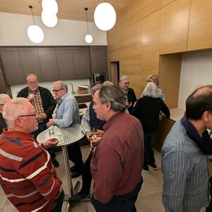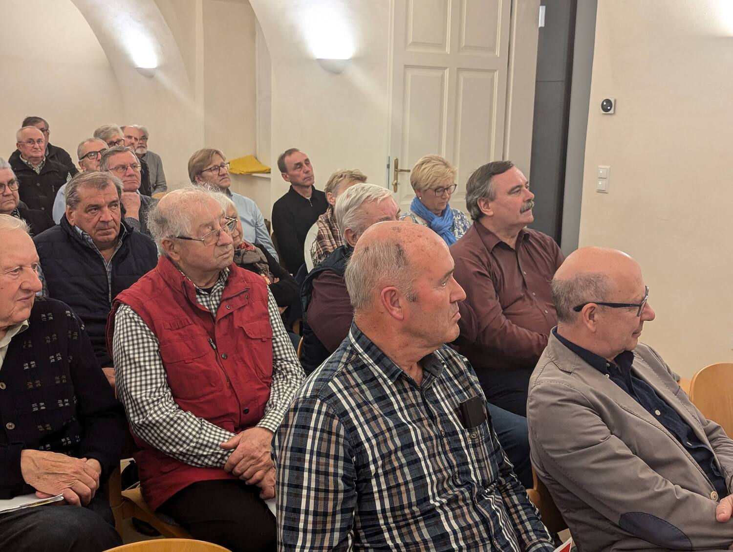 Die Veranstaltung zog nicht nur viele Männer, sondern auch einige Frauen an, die sich in der einladenden und warmen Atmosphäre des neuen Pfarrtreffs sehr wohl fühlten. Die besondere Gestaltung des Raums trug dazu bei, dass der Abend für viele zu einem Ort der Reflexion und des Austauschs wurde.