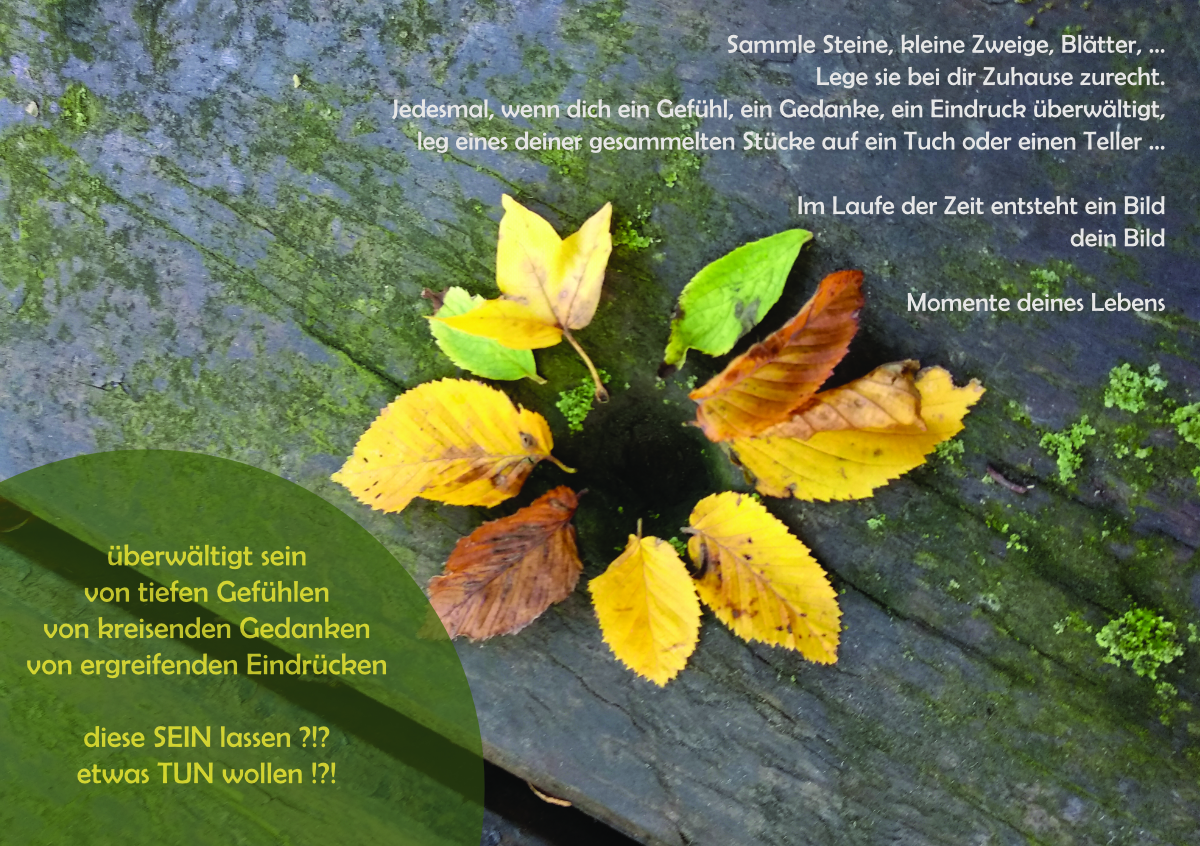 Jedesmal, wenn dich ein Gefühl, ein Gedanke, ein Eindruck überwältigt, leg eines deiner gesammelten Stücke auf ein Tuch oder einen Teller ...