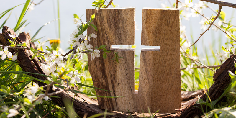 Als Erinnerung an den Tod Jesu legen wir Blumen zum (selbstgemachten) Kreuz.