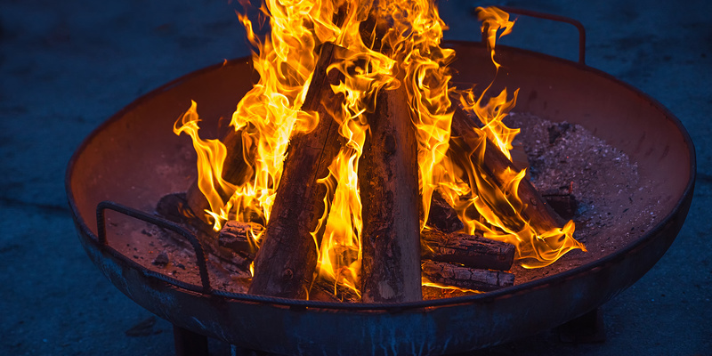 Eine/einer entzündet eine kleine Kerze an der Osterkerze oder am Osterfeuer aus der Feuerschale und gibt es an die nächste Person weiter. So wird es hell.