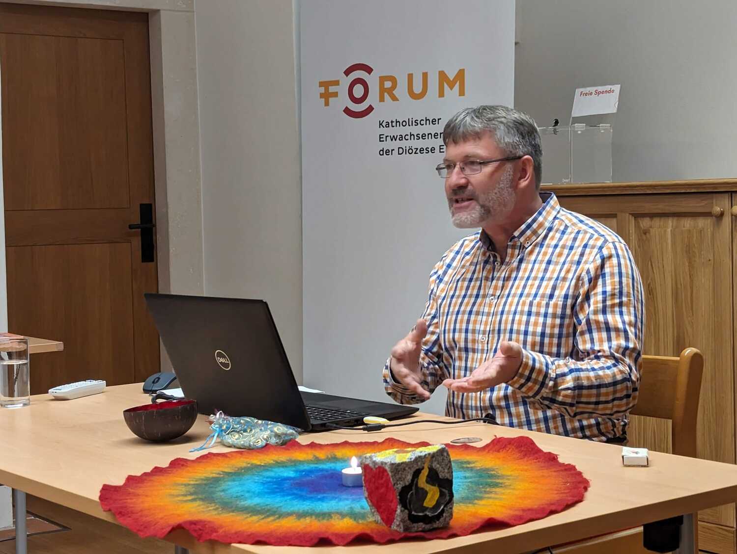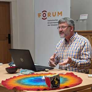 Nikolaus Faiman fesselte die Anwesenden mit einem breiten Spektrum an Anschauungsmaterial und praxisnahen Beispielen. Einfühlsam und mit großem Fachwissen erläuterte er den Unterschied zwischen Ritualen und Gewohnheiten. Dabei hob er hervor, wie Rituale im Familienalltag eine Brücke zwischen Glauben und dem täglichen Leben schlagen können.