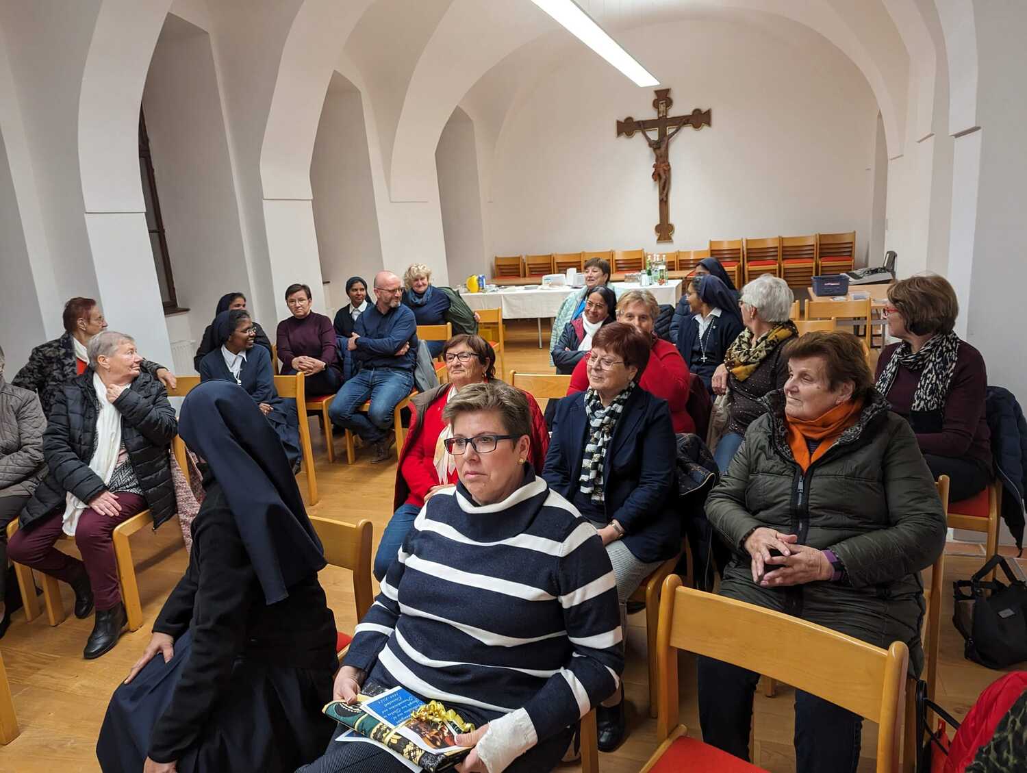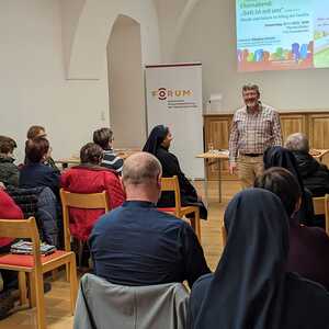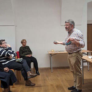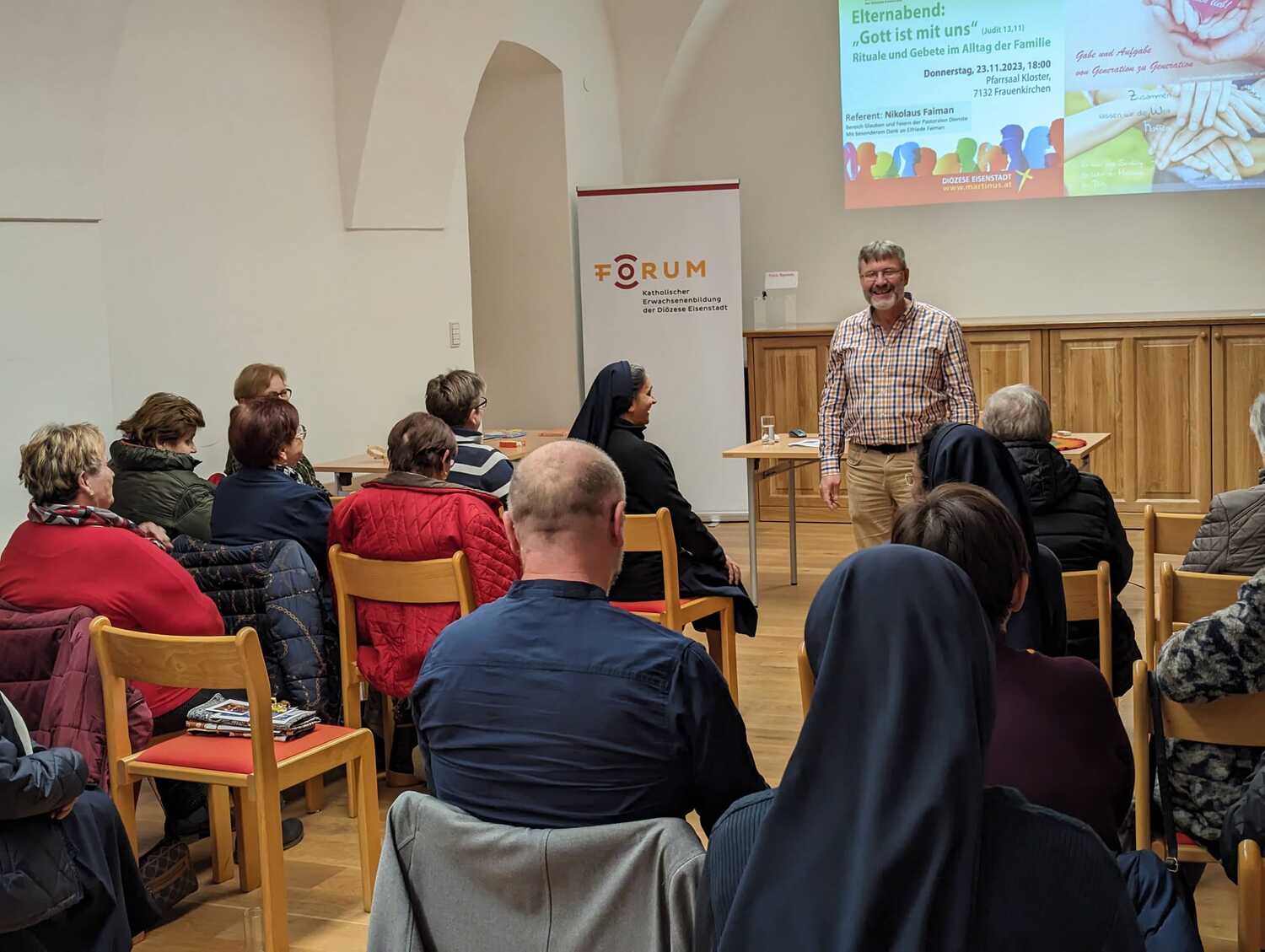 Am vergangenen Donnerstagabend fanden sich rund 30 Interessierte im Pfarrsaal des Klosters Frauenkirchen ein, um am Vortrag "Gott ist mit uns" teilzunehmen. Der Referent des Abends, Nikolaus Faiman, Mitarbeiter des Bereiches Glauben und Feiern der Pastoralen Dienste der Diözese Eisenstadt, sorgte mit seinem Einblick in die Welt der Rituale und Gebete im Alltag der Familien für eine inspirierende Atmosphäre.