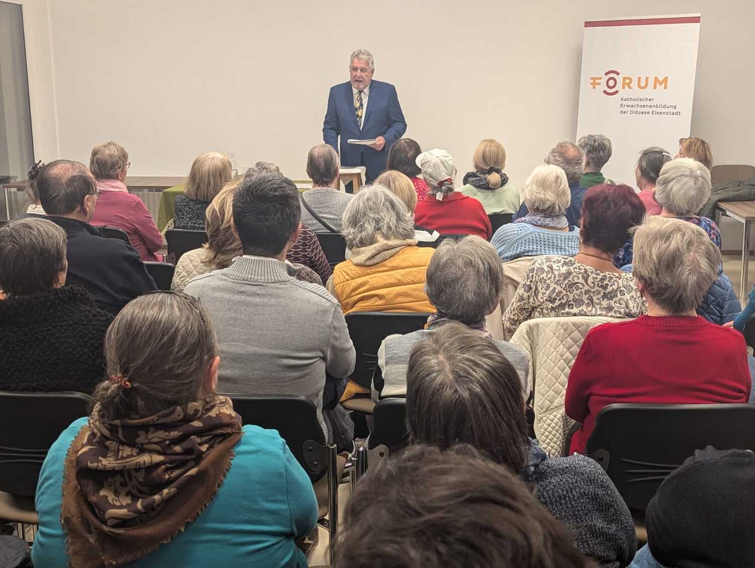Wer den Vortrag in Winden am See verpasst hat oder Prof. Dr. Essmann erneut erleben möchte, hat am 4. November 2024 die Gelegenheit, ihn im Pfarrheim Tadten zu hören. Dort wird er zum Thema „Glauben macht Beine – Wallfahrten zwischen Religiosität und Fitness“ referieren. Zu dieser Veranstaltung lädt das Team der Katholischen Frauenbewegung und der Katholischen Männerbewegung des Dekanats Frauenkirchen in Kooperation mit dem Forum Katholischer Erwachsenenbildung der Diözese Eisenstadt ein.