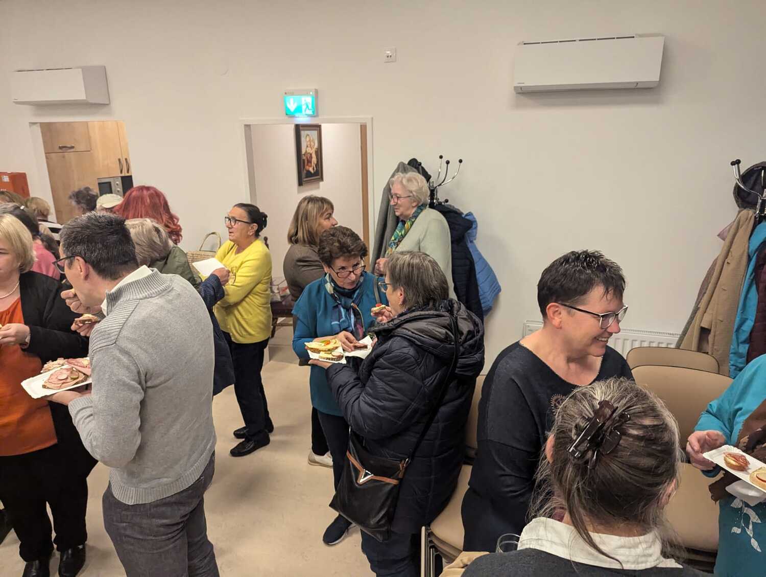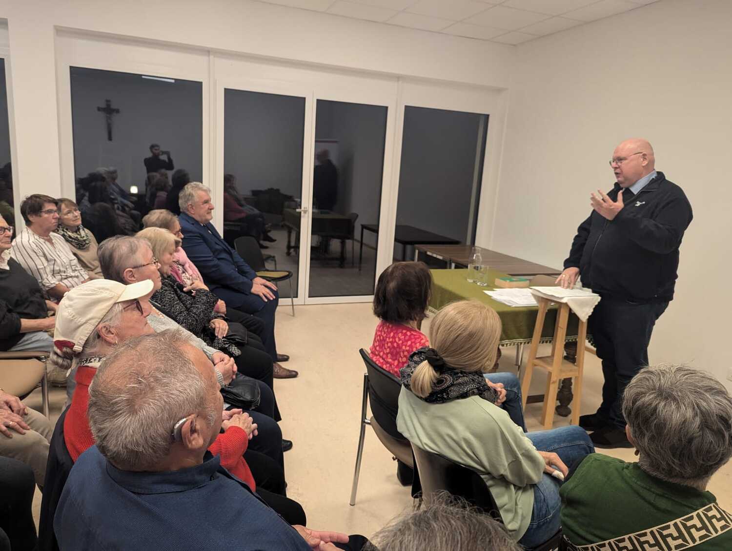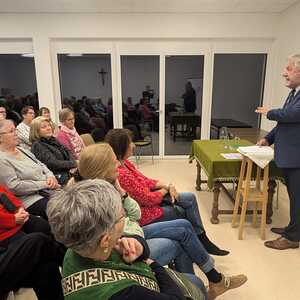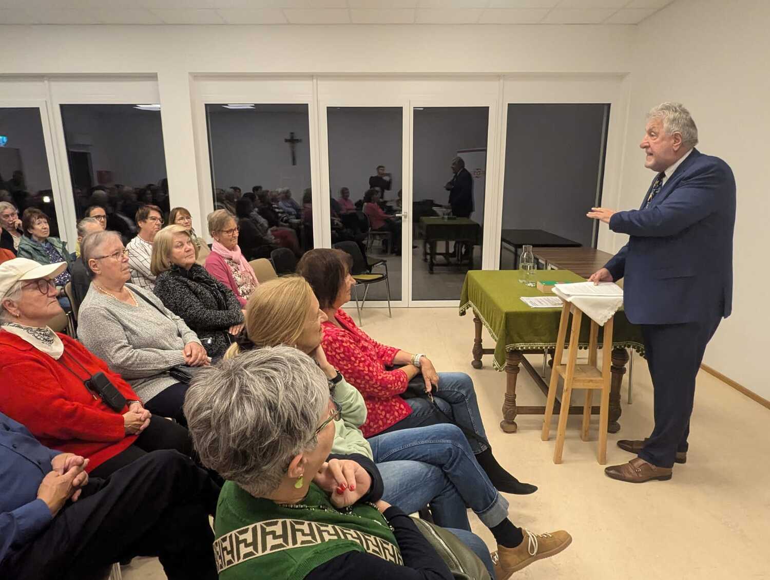 Nach dem Vortrag blieb ausreichend Zeit für einen offenen Austausch, den viele der Anwesenden nutzten. Bei Brot und Wein kamen die Besucher ins Gespräch und nahmen auch die Gelegenheit wahr, mit dem Referenten direkt in Kontakt zu treten. Diese persönliche Interaktion wurde von den Teilnehmer:innen besonders geschätzt.