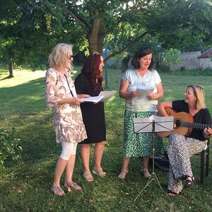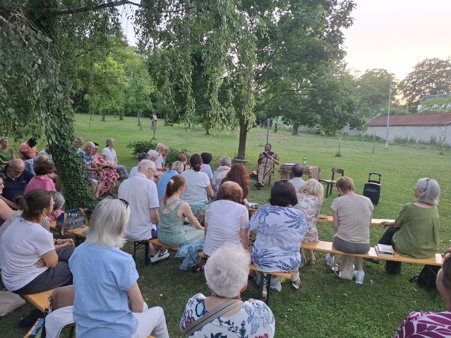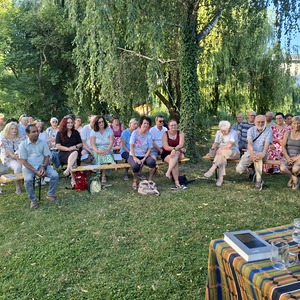 Das musikalische Umrahmung mit den beiden gemeinsam gesungenen Liedern "Love can build a bridge" und "Ihr sollt ein Segen sein", und der Ausklang bei Brot und Wein in der Pfarrlaube verlieh dem Abend eine besondere Atmosphäre.