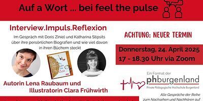 Die Online-Gesprächs-Reihe "auf a Wort", eine Initiative von "feel the pulse", geht weiter. Nach Hans Mendl sind am Donnerstag, dem 24. April 2025, sprechen Doris Ziniel und Katharina Stipsits mit zwei besonderen Damen über Lebensläufiges und Bildhaftes: