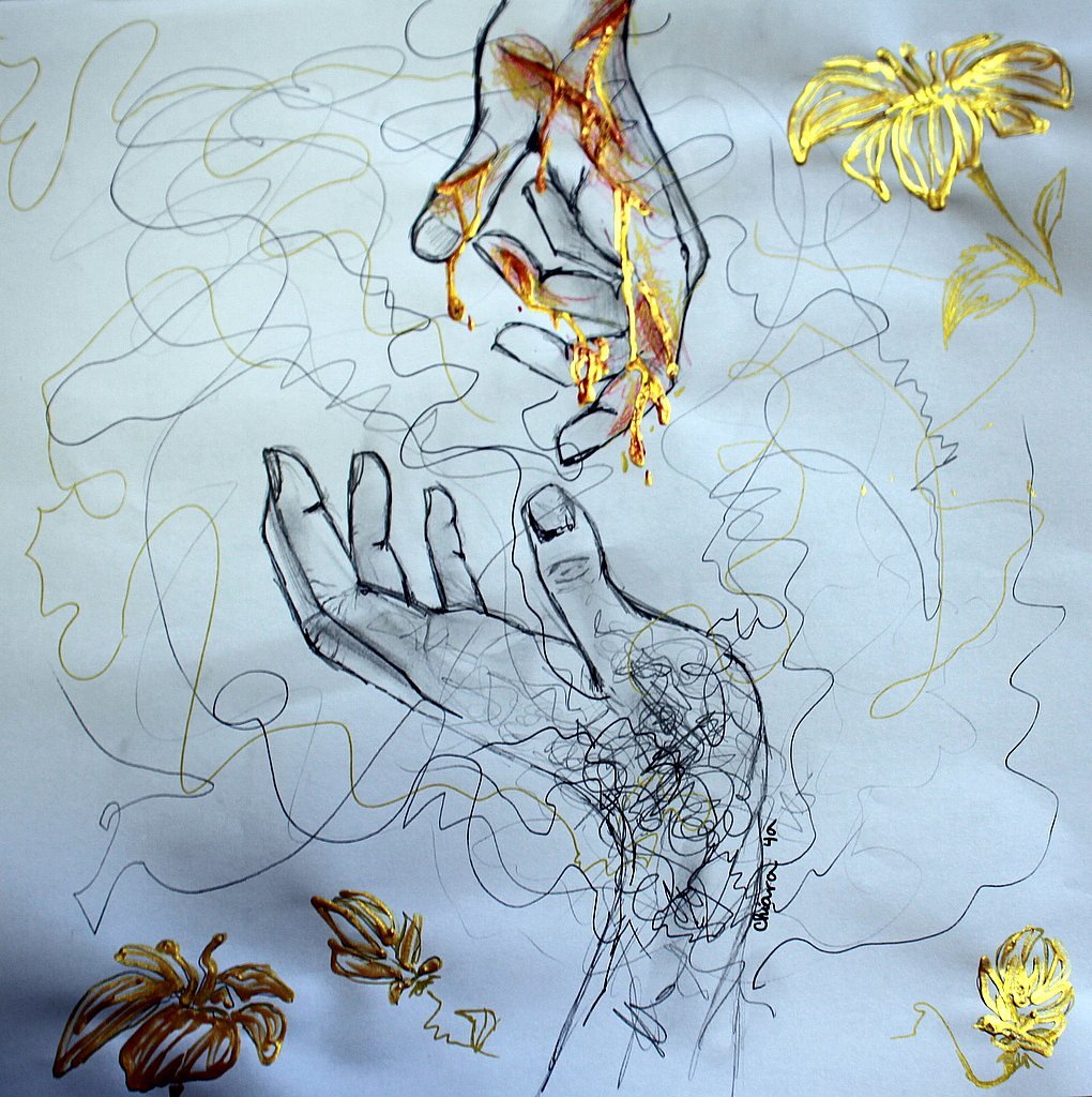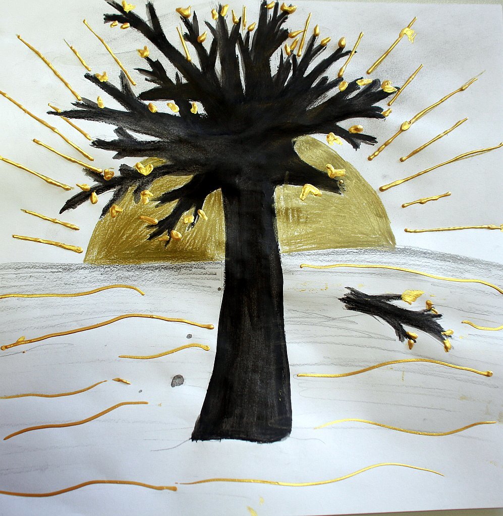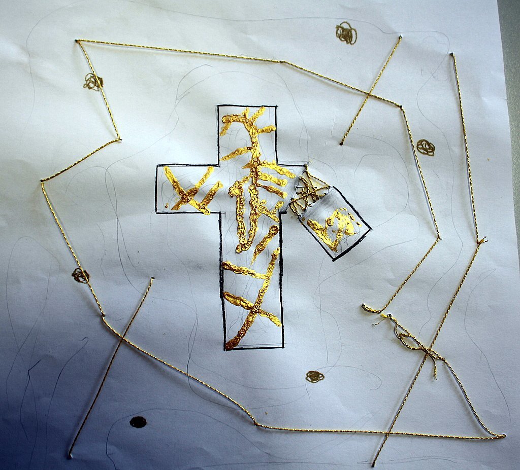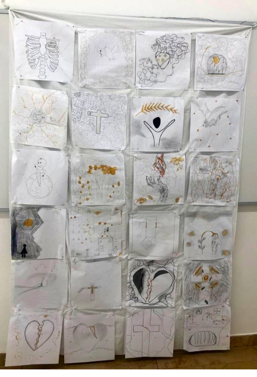 In den Hungertüchern, die die Schülerinnen und jeder Schüler malen, und bringen neben Verletzungen und Krisen auch Wandlungsmomente durch verschiedene Hoffnungssymbole zum Ausdruck.