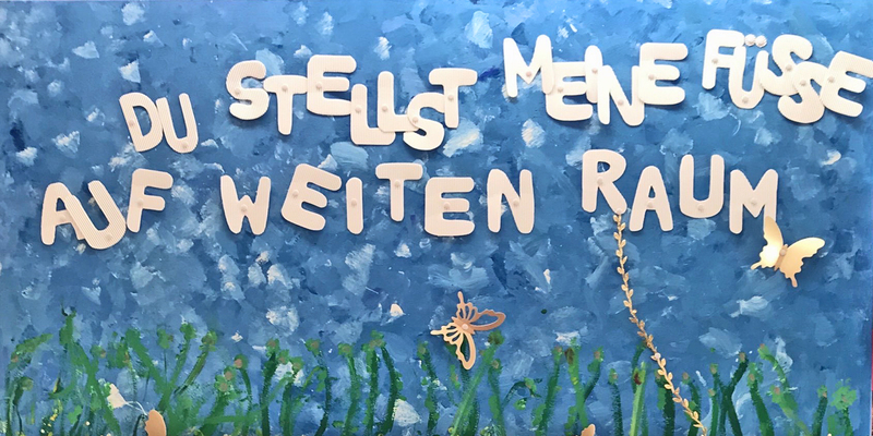Die zwei riesigen Betonfüße vor dem Gesamtwerk verleihen dem Psalmwort besondere Ausdruckskraft und lassen den oder die Betrachter*in etwas von „WEITEM RAUM“ erahnen.