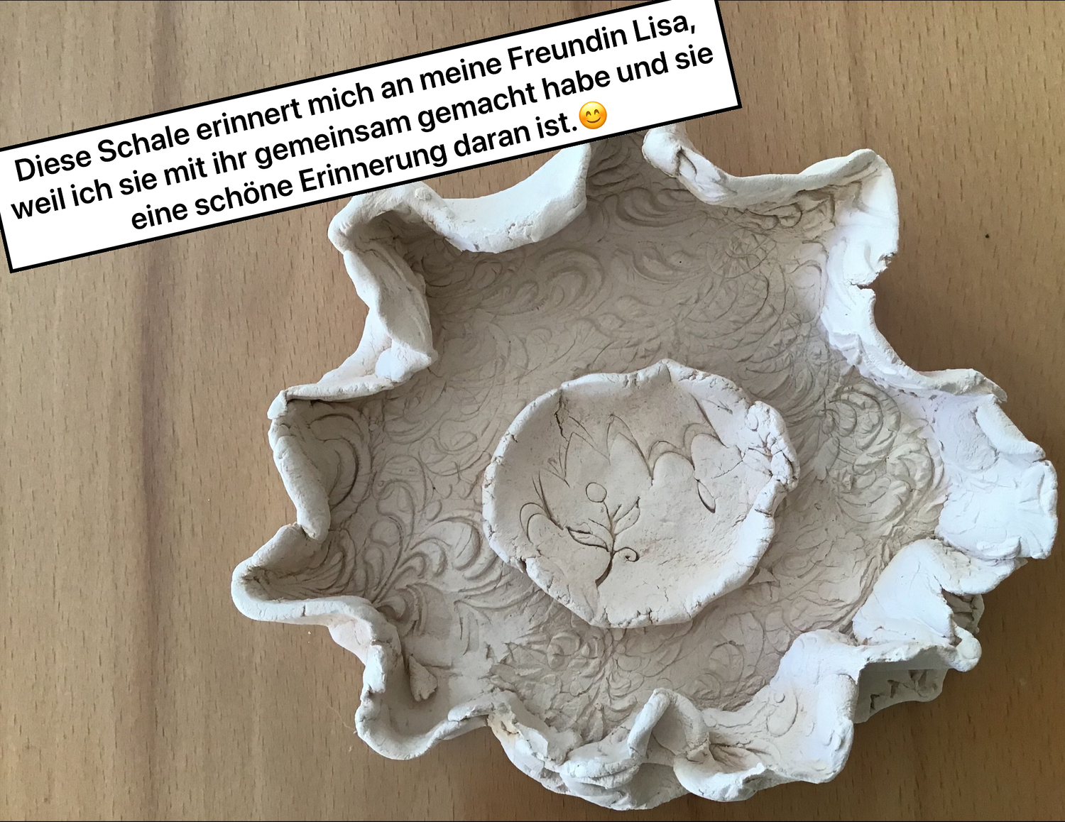 schreib, wenn du magst, einen Satz dazu, der erzählt, warum dir diese Schale wertvoll ist und schicke das Bild an: