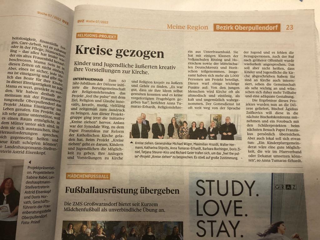 Das "feel the pulse" Team freut sich über die Presseberichte zur Mitmachaktion kreiseziehen.at zum "Synodalem Weg"