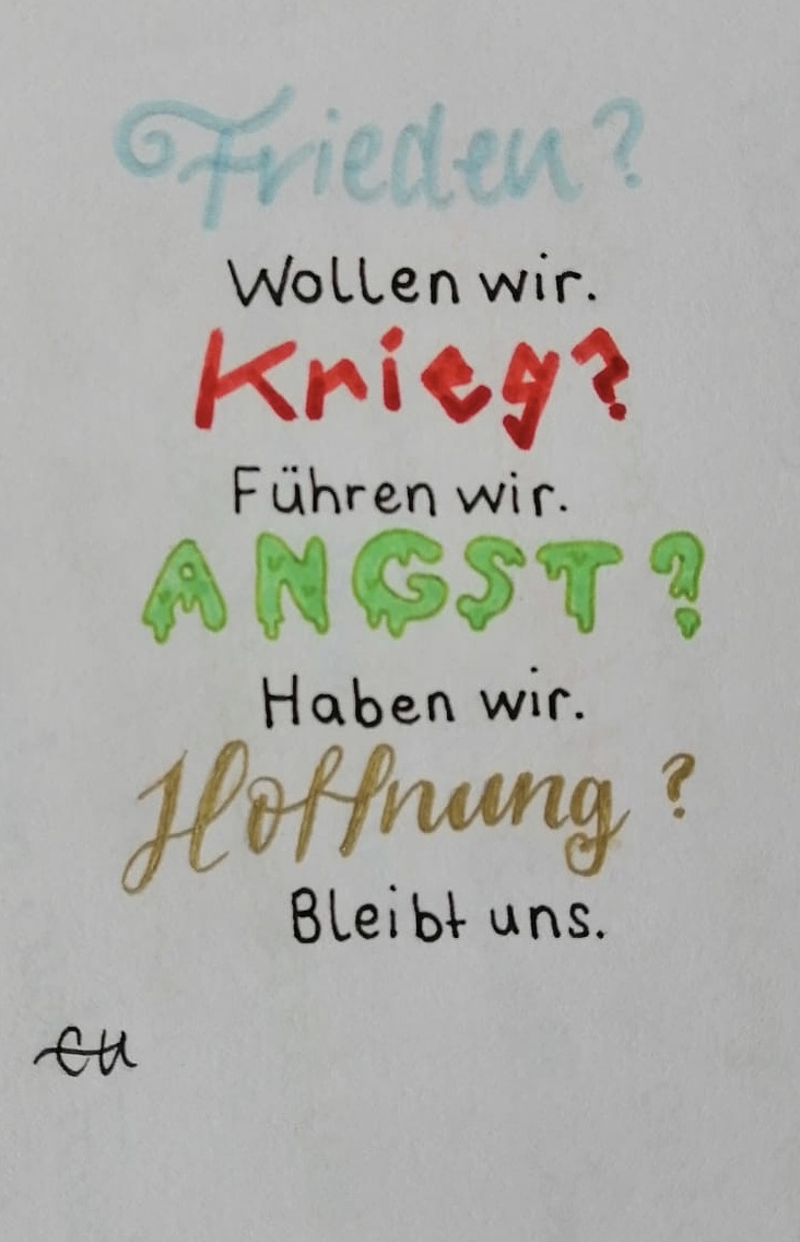 Unsere Schüler und Schülerinnen werden in den Nachrichten und über soziale Medien mit Kriegsbildern in der Ukraine konfrontiert. Und sie stellen Fragen, weil der Ukraine-Krieg sehr nahe ist. Ein Thema, das in der Schule thematisiert werden muss, um die Möglichkeit zu schaffen, Ängste und Sorgen anzusprechen und Fragen zu stellen.
