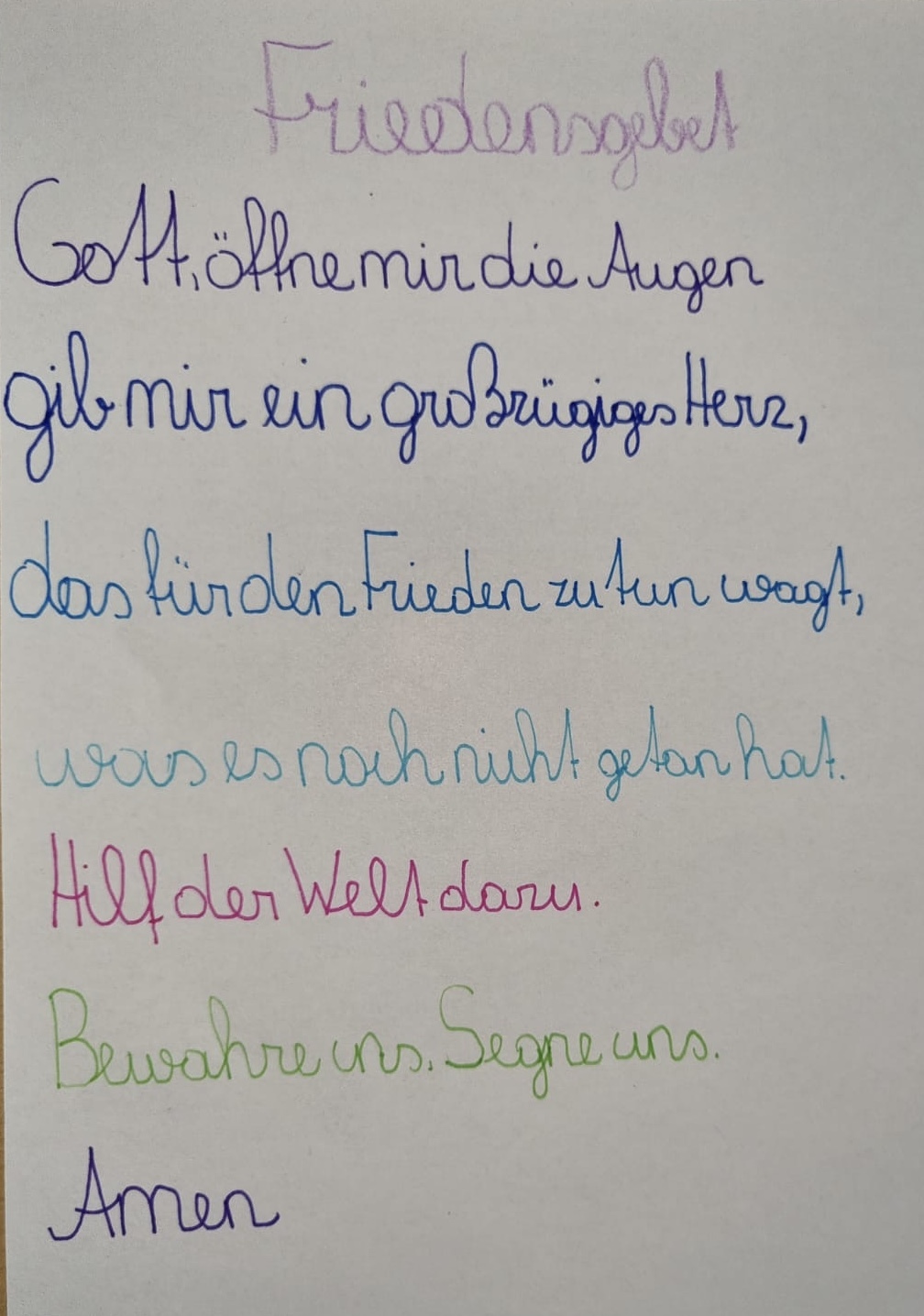 Friedensgebete schreiben