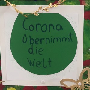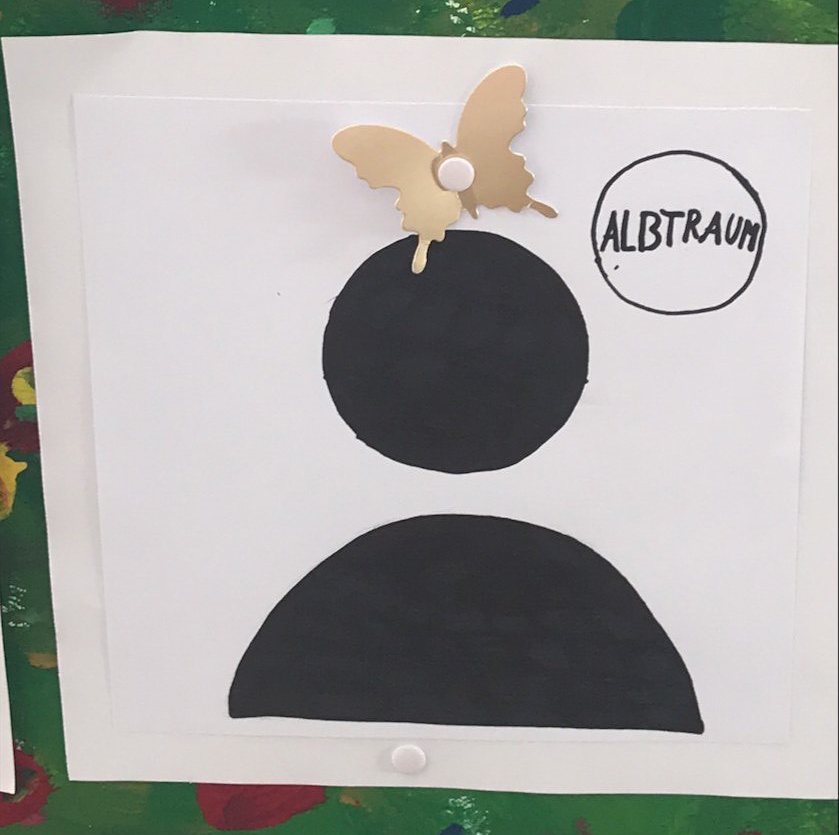 Die verschiedenen Interpretationen und Wahrnehmungen finden sich in Bildern und Worten auf einem großen Bild einer Blumenwiese wieder und werden durch einen goldenen Blütenfaden verbunden – goldene Schmetterlinge sind Zeichen für die Hoffnung auf WANDEL.