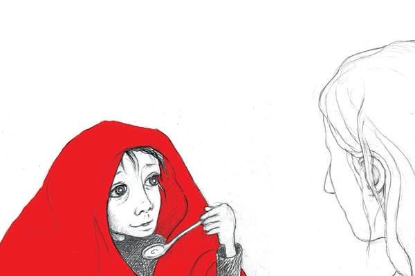 Amir, das Flüchtlingskind, bekommt eine halbe rote Decke geschenkt und eine freundliche Frau erzählt ihm Geschichten aus dem Leben von Sankt Martin. Die Zuwendung in der Fremde fühlt sich für Amir an wie ein warmer Mantel.
