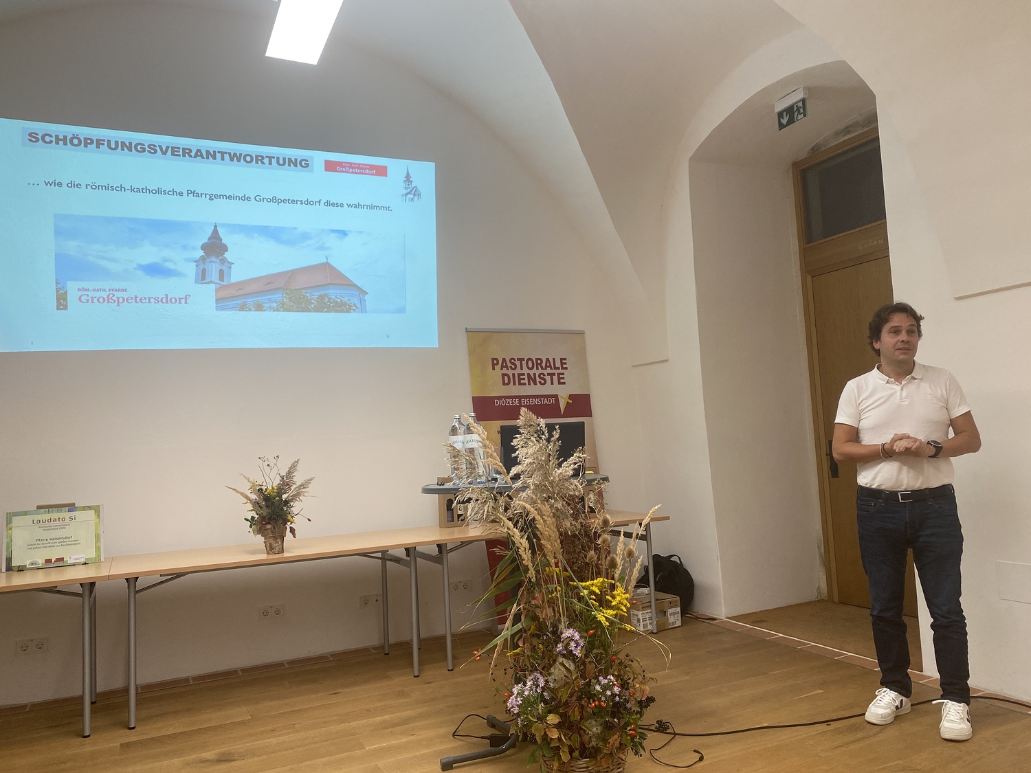 Die Pfarre Großpetersdorf, die schon seit 2017 den Fachbereich „Schöpfungsverantwortung“ im Pfarrgemeinderat verankert und prioritär behandelt. Aktuell kümmern sich fünf Personen rund um den Umweltpfarrgemeinderat Johannes Feichtinger um den Verantwortungsbereich Nachhaltigkeit. Nach dem Motto „Für eine intakte Umwelt beten ist gut und wichtig – konkretes Umsetzen ist besser“ wird versucht, im Rahmen pfarrlicher Veranstaltungen die Wichtigkeit eines sorgsamen Umganges mit unserer Lebensgrundlage Umwelt hervorzuheben und zu leben. So spielt das Thema Nachhaltigkeit bei Festen, Wallfahrten, Liturgien, in der Kinderpastoral oder auch bei baulichen und wirtschaftlichen Entscheidungen eine große Rolle.