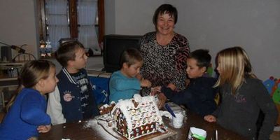 Erstkommunionskinder backen Lebkuchenhaus
