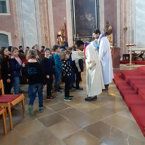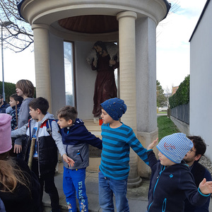 Begonnen haben sie in der Bergkirche. Danach durften sie die Stationen besuchen und einige Gebete mitgestalten: In der Gnadenkapelle des Kalvarienberges, bei der Dreifaltigkeitssäule Kleinhöflein, bei der Antoniuskapelle und beim Guten Hirt am Axerweg.