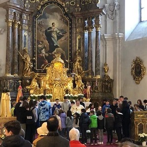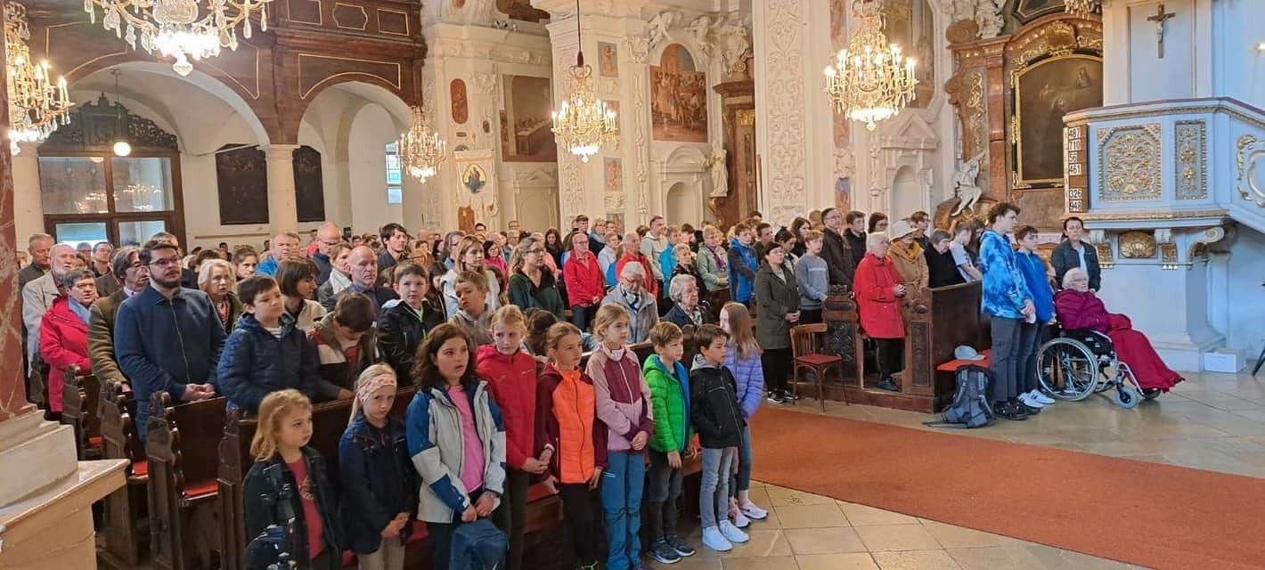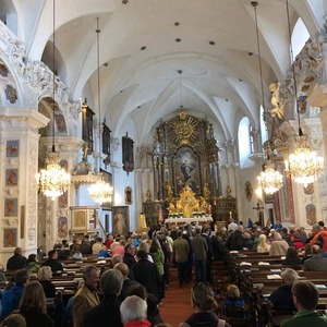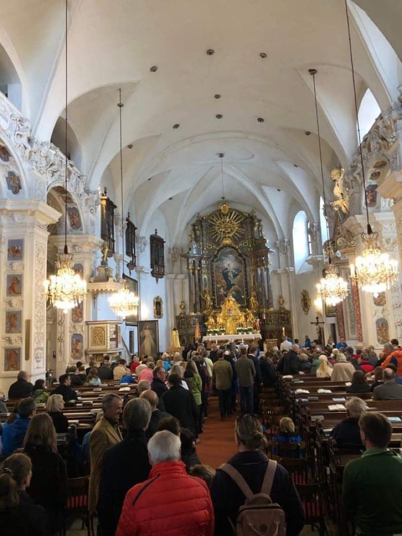 Um 10:00 Uhr wurde mit über 400 Gläubigen aus dem Pfarrverband Oberberg-Kleinhöflein und der Militärpfarre Burgenland in der übervollen Basilika Loretto gemeinsam der Gottesdienst gefeiert.