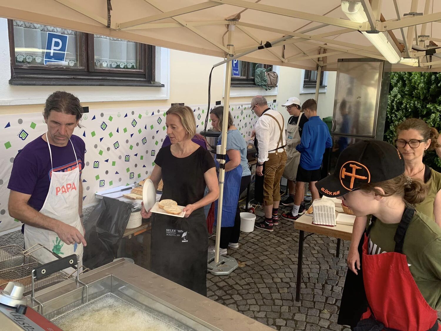 Danke an alle Helferinnen und Helfer in der Küche und an den Fritteusen, hinter der Bar, beim Bonverkauf und bei der Abwasch. Danke an alle Losverkäufer, Kellnerinnen und Kellner, sowie an die Technik. Danke an die Stadt und den Bauhof für die tolle Zusammenarbeit. (Es hat uns riesig gefreut, dass der Herr Bürgermeister, der Herr Vizebürgermeister und die Frau Vizebürgermeisterin mit uns gefeiert haben!). Danke an alle Sponsoren der Tombolapreise und jenen, die und durch Plakate finanziell unterstützt haben. Danke an die Mitarbeiterinnen beim Kinderprogramm, an die Sängerinnen und Sänger des Chores aus Kleinhöflein und die Band Freu(n)de. Danke an alle, die die Tische und Zelte aufgestellt haben. Nicht zuletzt danke an das Organisationsteam rund um Günter, Bettina, Fred und Andi. Ein großes Dankeschön natürlich an alle Besucherinnen und Besucher vom Oberberg, aus Kleinhöflein und der Dompfarre, sowie an die vielen Besucher aus nah und fern!