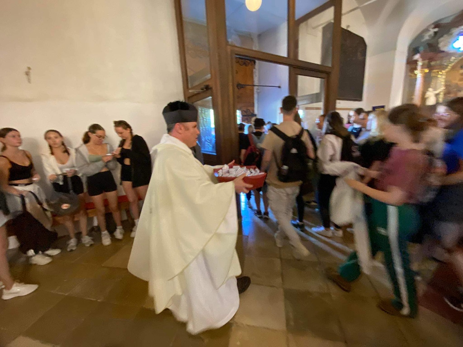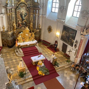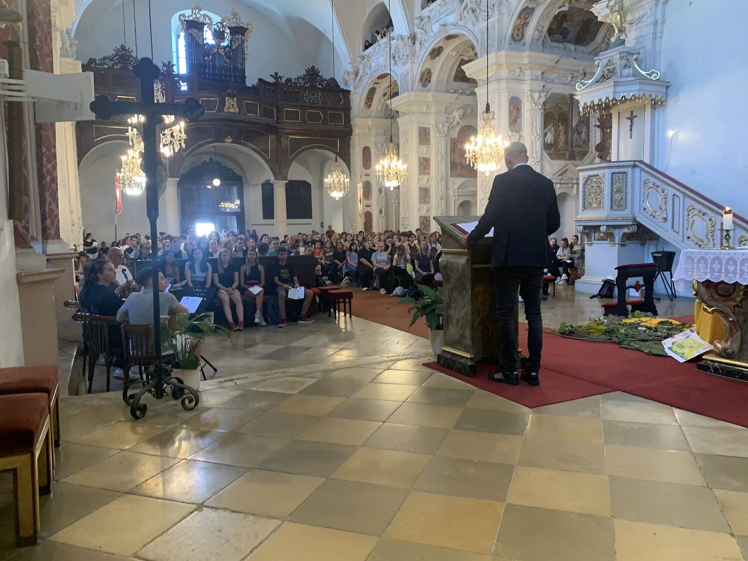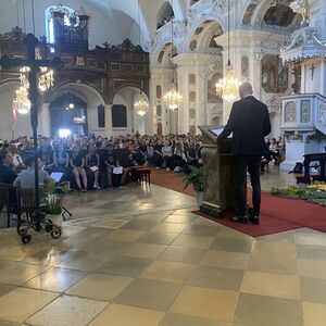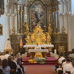 Am 6. September 2023 pilgerte unser Herr Pfarrer in doppelter Funktion mit rund 450 Schülerinnen und Schülern des Theresianums nach Loretto. Einerseits als Pfarrmoderator der Stadt- und Propsteipfarre Eisenstadt-Oberberg, in dessen Gebiet diese hervorragende Schule liegt, andererseits als Militärpfarrer, um mit Schülern, welche in den nächsten Jahren ihren Grundwehrdienst ableisten werden, ins Gespräch zu kommen.