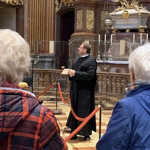 Die erste Station war allerdings das wunderbare Stift Melk. Pater Alois erklärte uns mit launigen Worten nicht nur die Geschichte des Stifts, sondern zeigte uns auch so manches verborgene Detail in der Kirche, bevor es zu einer kleinen Jause in den sonst verschlossenen Innenhof des Stiftes ging.