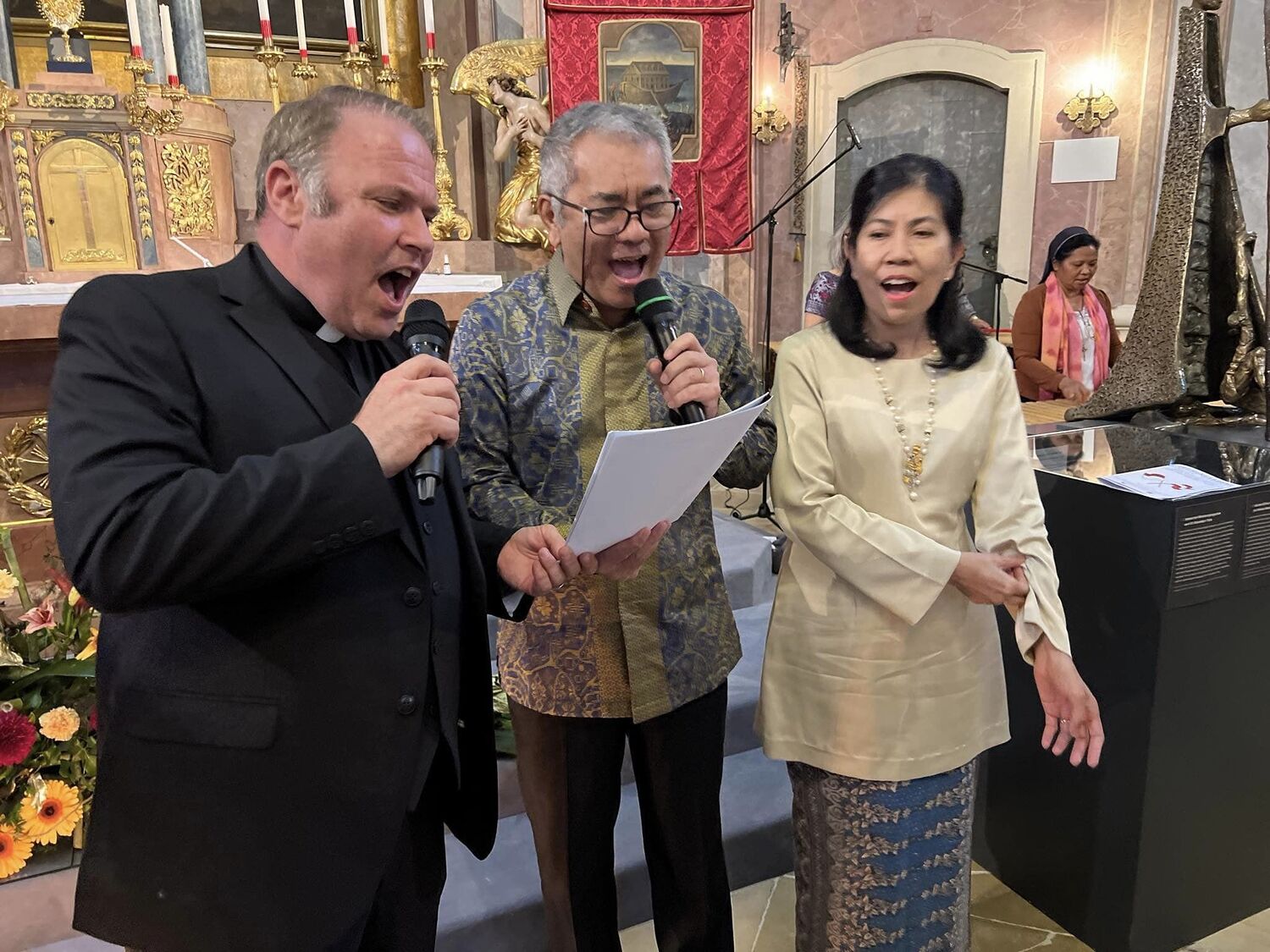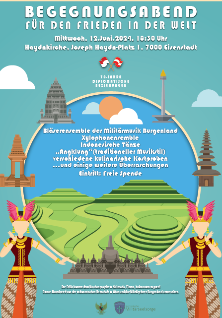 Im dritten Teil unseres Studientages bildete wie im Vorjahr ein multikultureller Begegnungsabend in der Berg Kirche, zu welchem die Pfarre Oberberg, die Botschaft der Republik Indonesien und die Militärpfarre einluden.
