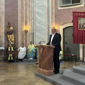 Bürgermeister Steiner betonte die gute Zusammenarbeit von Stadt und Kirche, insbesondere mit dem "Heiligen Berg" am Oberberg. Er bot die weitere Unterstützung der Stadt für kommende gemeinsame Projekte an.