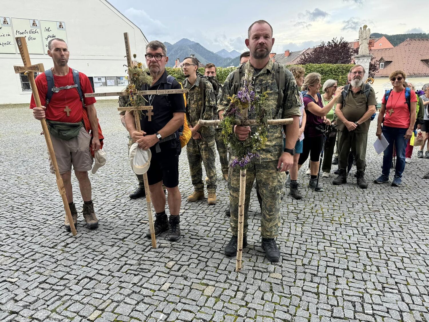 Danke an alle, die aus dem fernen Oberberg und Kleinhöflein zu Fuß, mit dem Auto oder dem Bus nach Mariazell gekommen sind, ebenso ein Dank an alle, die aus Bruckneudorf mit auf Wallfahrt waren, aus der Garnison Eisenstadt und einen ganz besonderen Dank an die Kameraden des JgB19 mit dem Herrn Kommandanten an der Spitze, die den weiten Weg auf sich genommen haben.