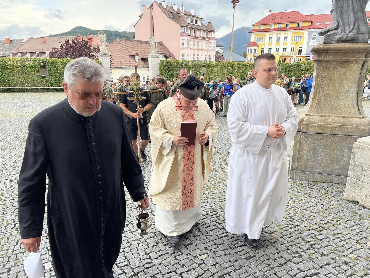 Militärdekan, Propst- und Stadtpfarrer DDr. Alexander Wessely mit seinen drei Pfarren auf dem Weg zur Mutter der Gnaden.