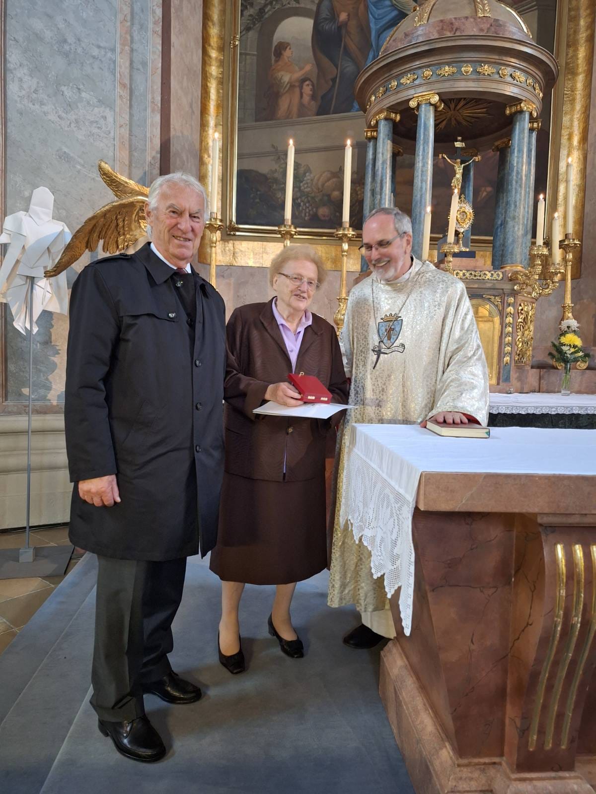 Frau Helga Zuchtriegl wurde während des Festgottesdienstes am 27. Oktober mit der höchsten diözesanen Auszeichnung, dem Martinsorden in Gold, ausgezeichnet. Propstpfarrer P. Lorenz Voith übergab Frau Zuchtriegl im Namen des Diözesanbischofs diese Auszeichnung. Kurator Hans Skarits hielt die Laudatio.