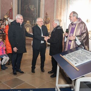Im Rahmen des Gottesdienstes am 1. Advent wurde Prof. Josef Bauer anl. seines 70. Geburtstages besonders geehrt. Die Laudatio hielt Erwin Tinhof. Für sein fast 50-jähriges Wirken an der Oberberg-Kirche erhielt er eine Ehrentafel in Stein überreicht; diese wird im Chorraum angebracht.