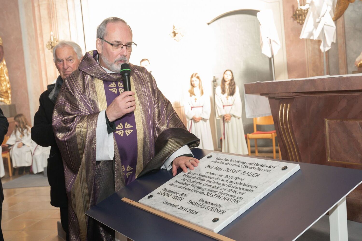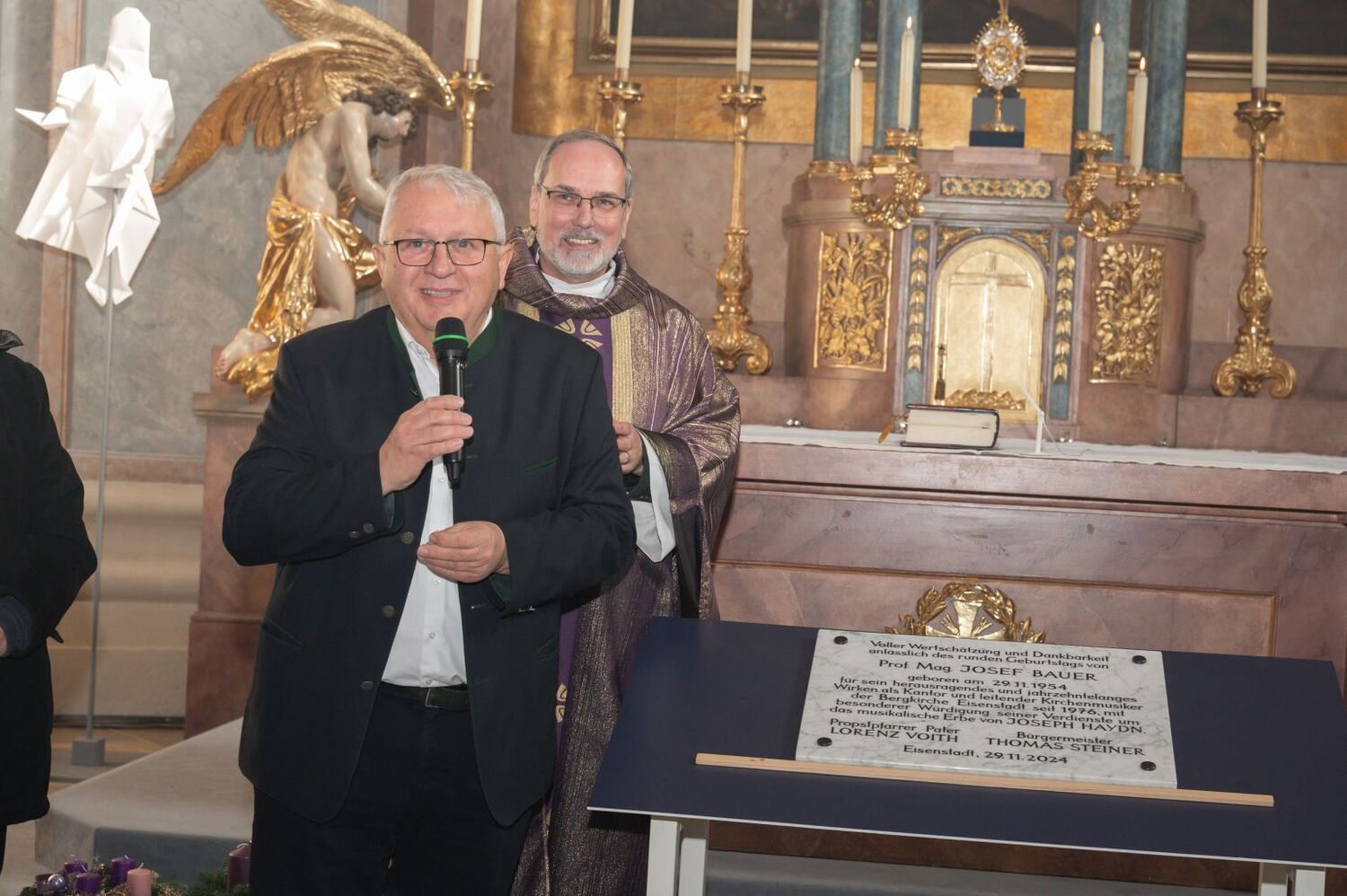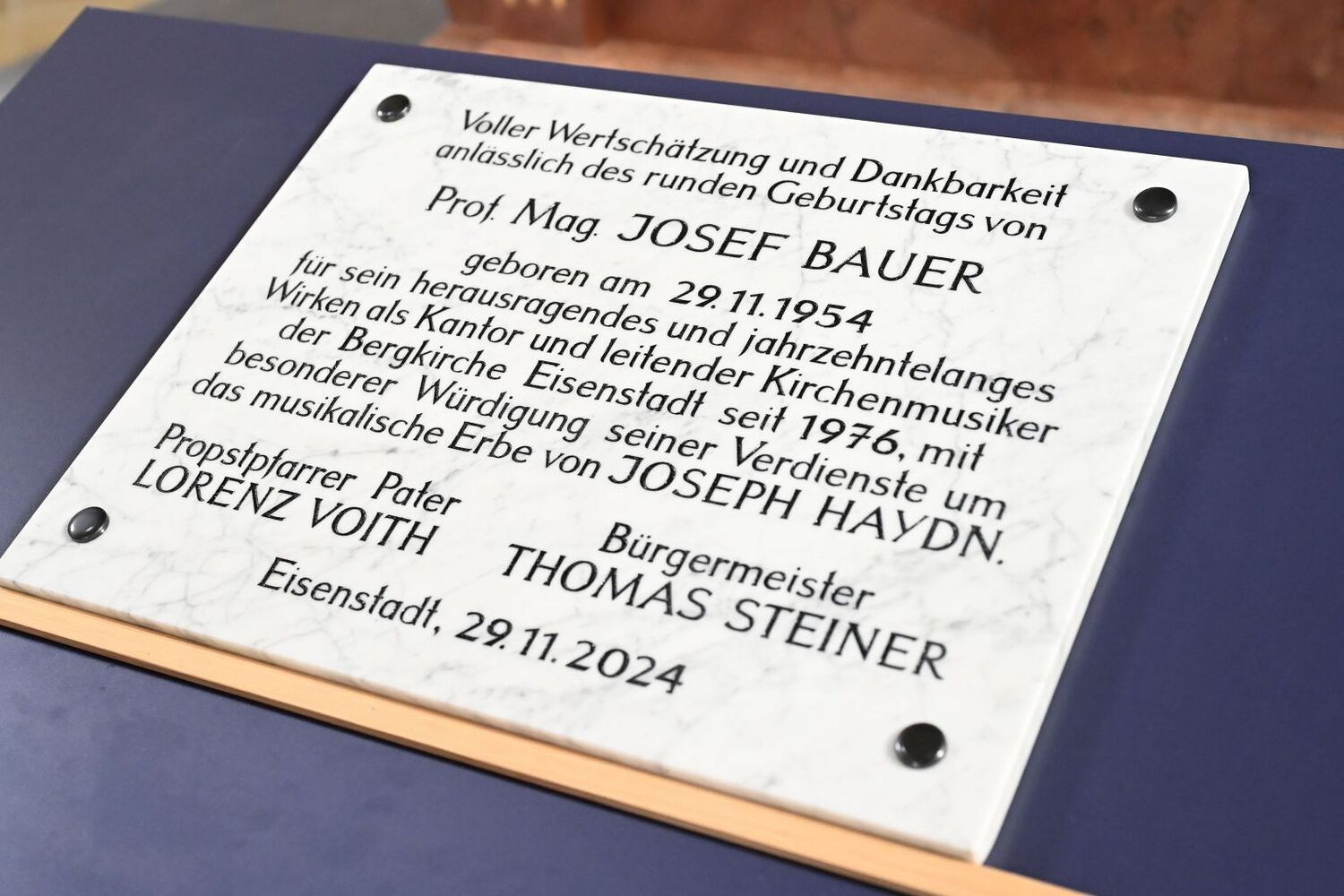 Prof. Bauer ist auch Mitglied im PGR sowie weiter für den Orgeldienst zuständig. Zugleich fördert er das Projekt einer umfassenden Restaurierung der Haydn-Orgel. Viele Verwandte und Freunde waren zu diesem Fest gekommen.