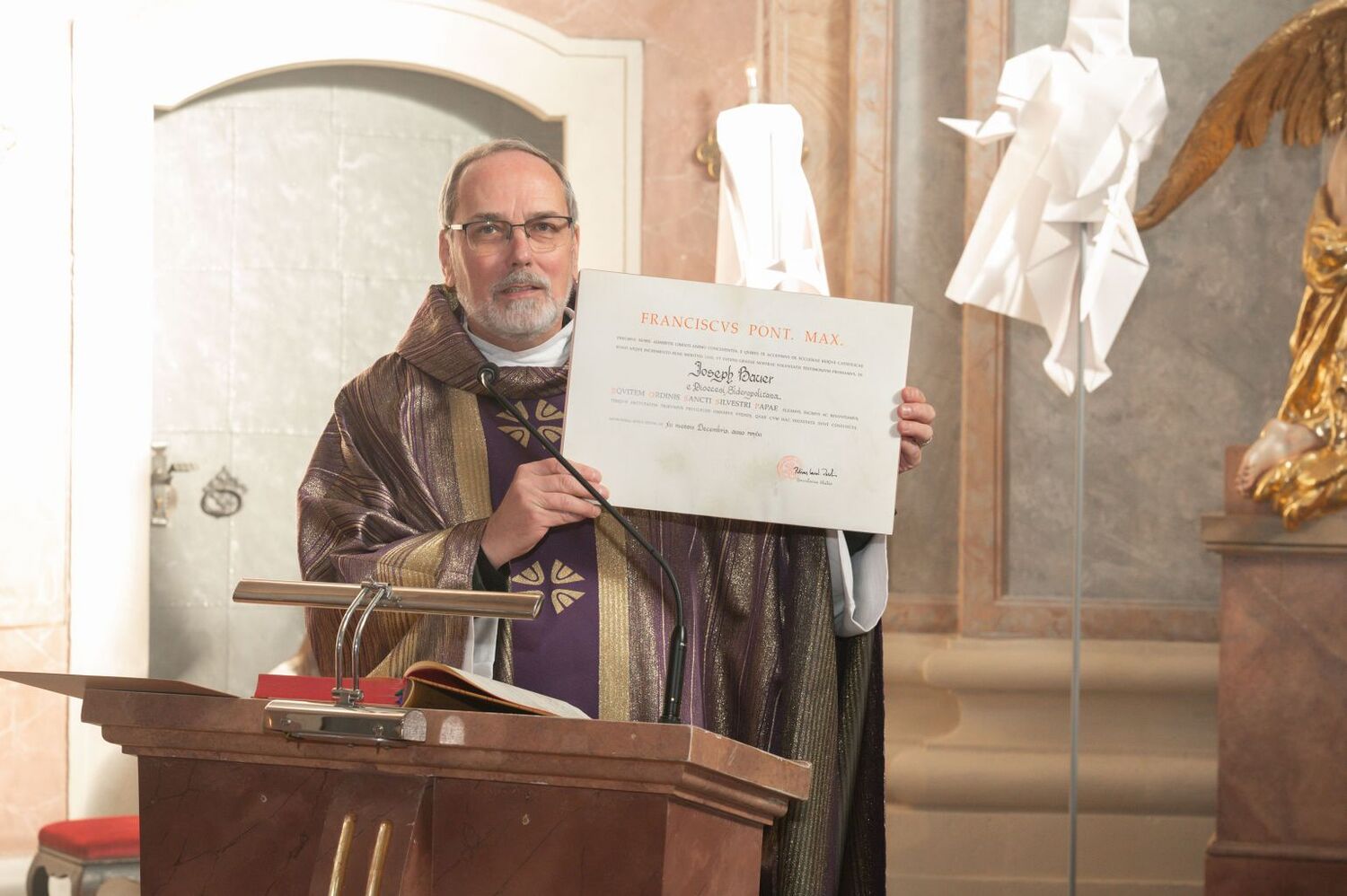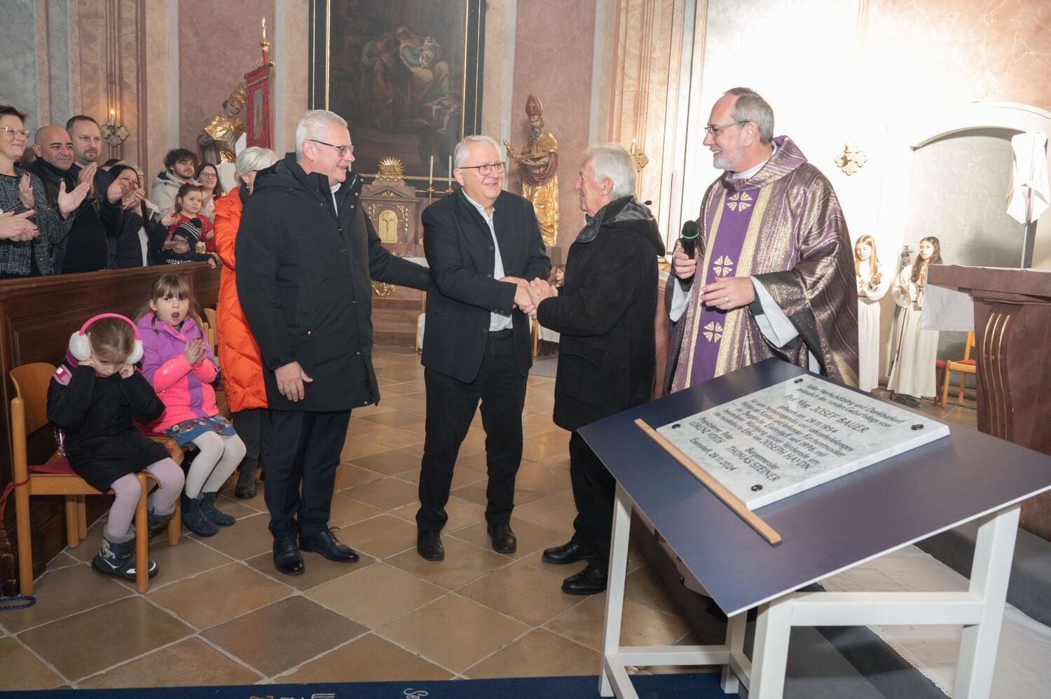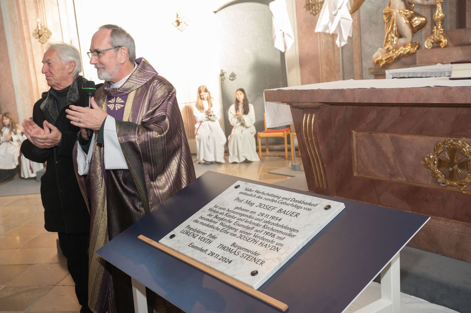 Prof. Bauer ist auch Mitglied im PGR sowie weiter für den Orgeldienst zuständig. Zugleich fördert er das Projekt einer umfassenden Restaurierung der Haydn-Orgel. Viele Verwandte und Freunde waren zu diesem Fest gekommen.