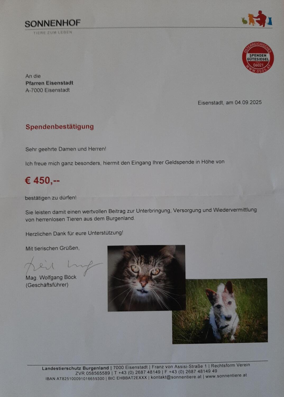 Schöpfungsverantwortung ist ein breitgefächertes Gebiet mit vielen Facetten. „Gott, du hilfst Menschen und Tieren“ – so das diesjährige Motto zum Ökumenischen Tag der Schöpfung, unter dem wir diesmal den Blick ganz besonders auf die Tiere richteten. Dem entsprechend wurde auch die Kollekte für den Sonnenhof, ein Tierschutzhaus (zwischen Eisenstadt und Siegendorf) mit wirksamer und nachhaltiger Tierschutzarbeit gespendet.