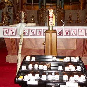 Firmling eine brennende Kerze vor das Kreuz stellte.