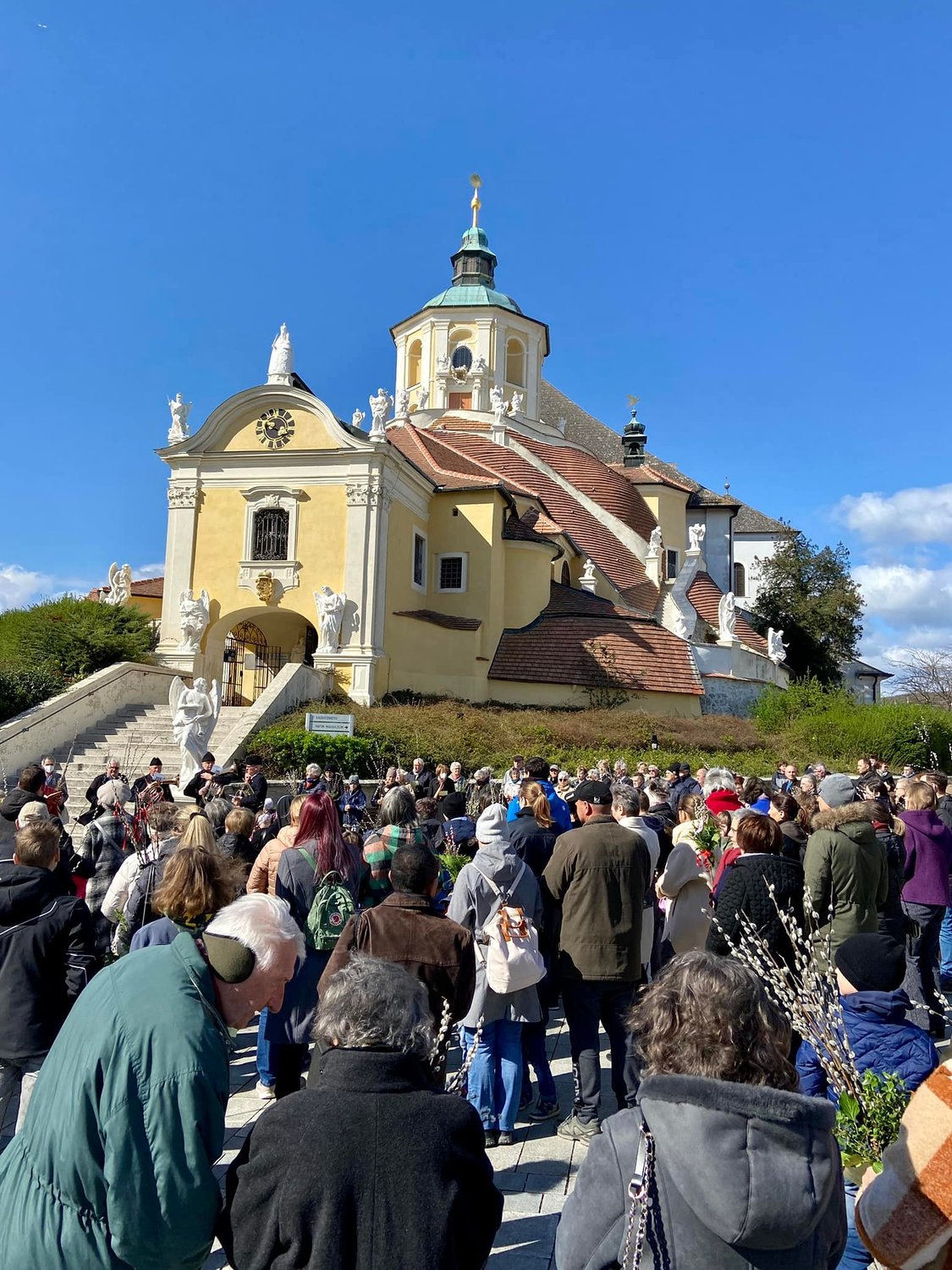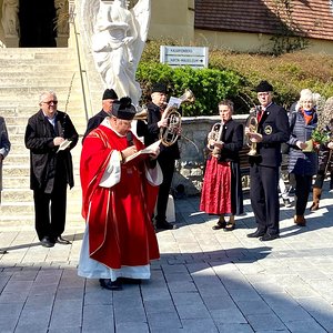Segnung der Palmzweige vor dem Kalvarienberg;