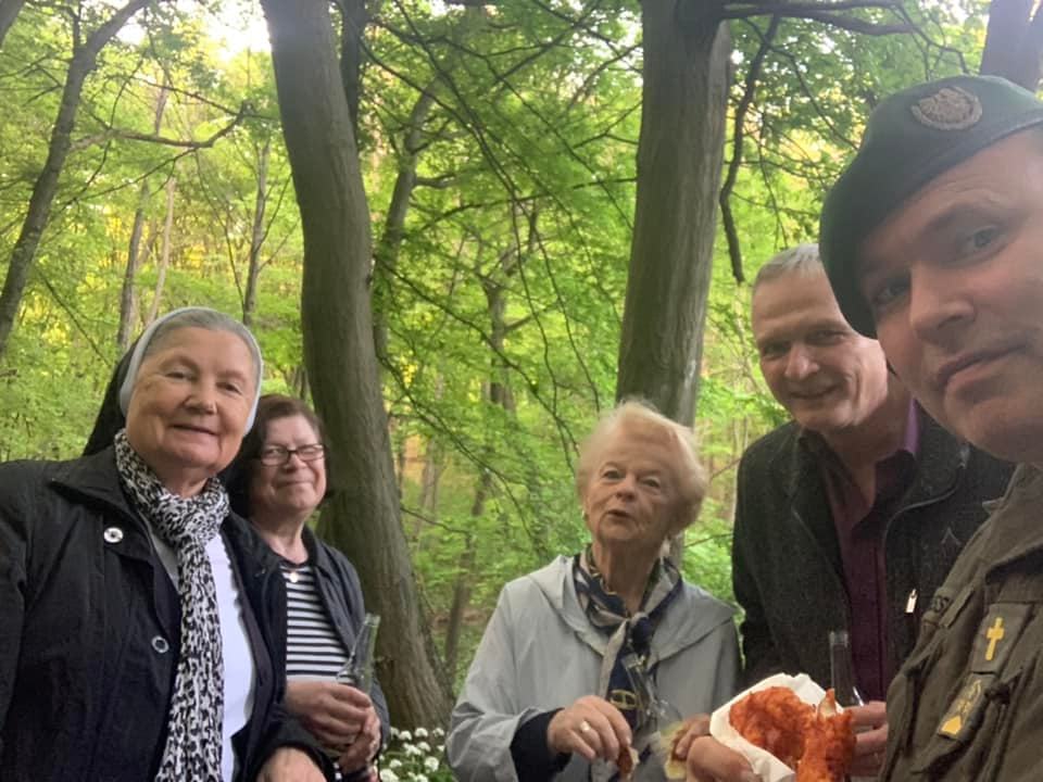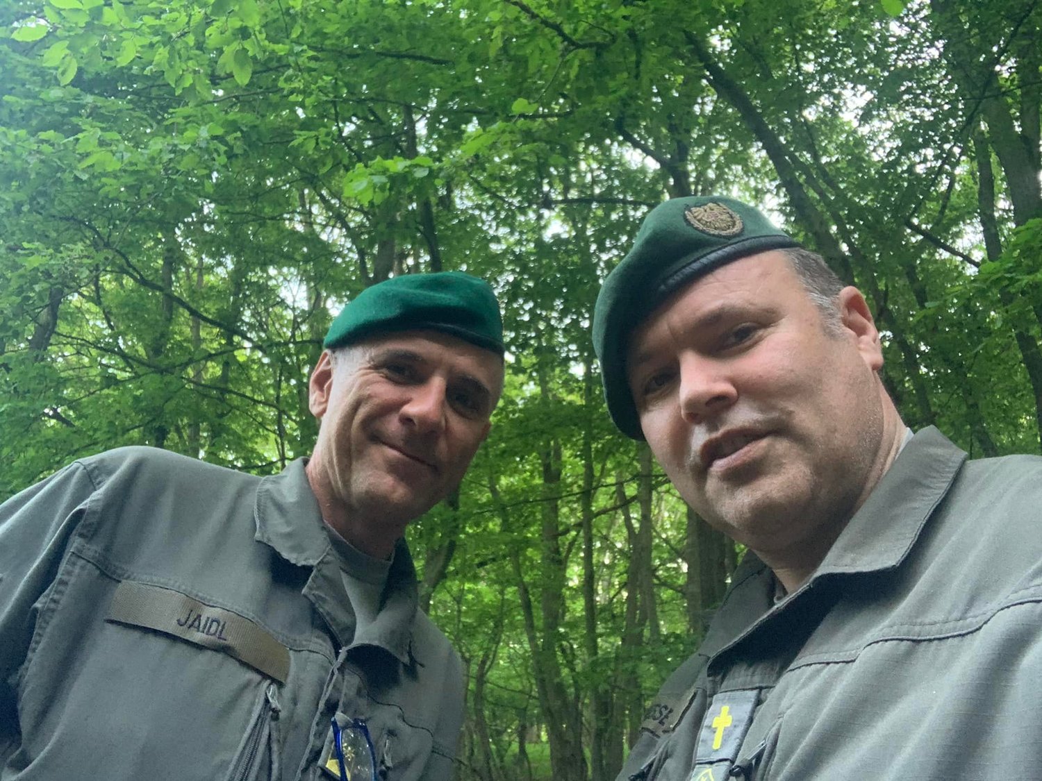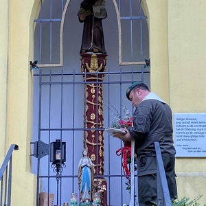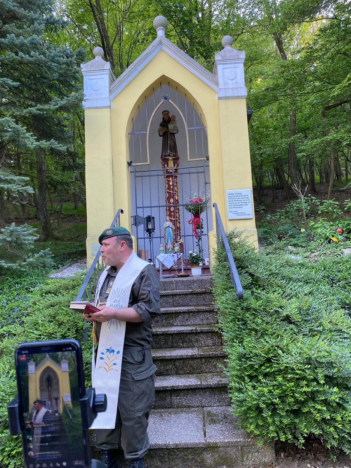 Nachdem vor zwei Jahren unsere traditionelle Maiandacht bei der Antoniuskapelle im Wald von Kleinhöflein nur per Livestream übertragen werden konnte und auch letztes Jahr nur wenige Teilnehmer mitfeiern konnten, war es umso schöner, dass ich heuer weit über 100 Mitfeiernde eingefunden haben. Besonders gefreut hat uns, dass nicht nur unser stellvertretender Militärkommandant und viele Kameraden des Aktiv-, Miliz- und Reservestandes mitgefeiert haben, sondern dass auch der ehemalige Militärmusikkapellmeister, Professor Oberst iR Rudi Schrumpf - der einst die Initiative zur Renovierung der Kapelle gestartet hat - gekommen ist, ebenso wie viele Gläubige aus dem Pfarrverband Oberberg-Kleinhöflein und darüber hinaus.
