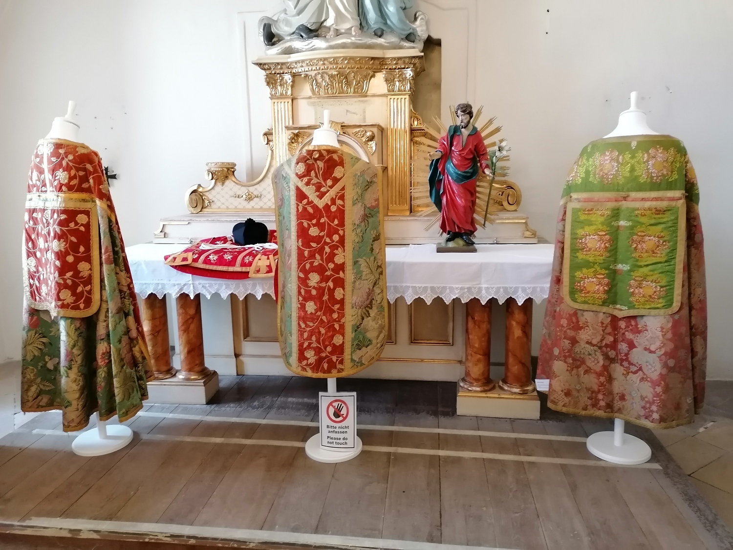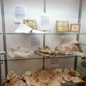 Seit der Langen Nacht der Kirchen am 10. Juni 2022 sind liturgische Gewänder und Kopfbedeckungen der Kirche von A bis Z, von Albe bis Zingulum in der Ausstellung "Des Propstes neue Kleider" in der Schatzkammer der Bergkirche Eisenstadt-Oberberg zu sehen.