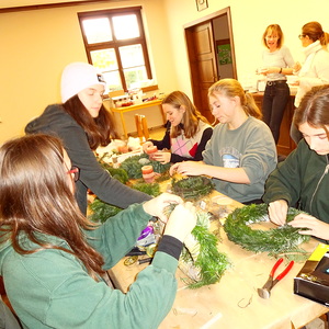 Eine schöne Einstimmung in den Advent war das Adventkranzflechten im Pfarrheim. Viele Firmlinge und auch einige Erwachsene waren mit Begeisterung dabei. Stolz hielten sie den kunstvoll gestalteten Kranz. Nach einer Stärkung mit Kuchen und Tee fand in der Kirche die Segnung der Kränze statt.